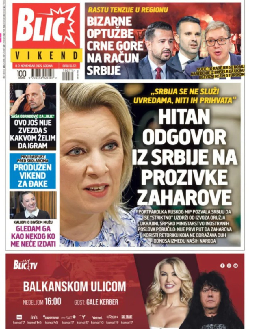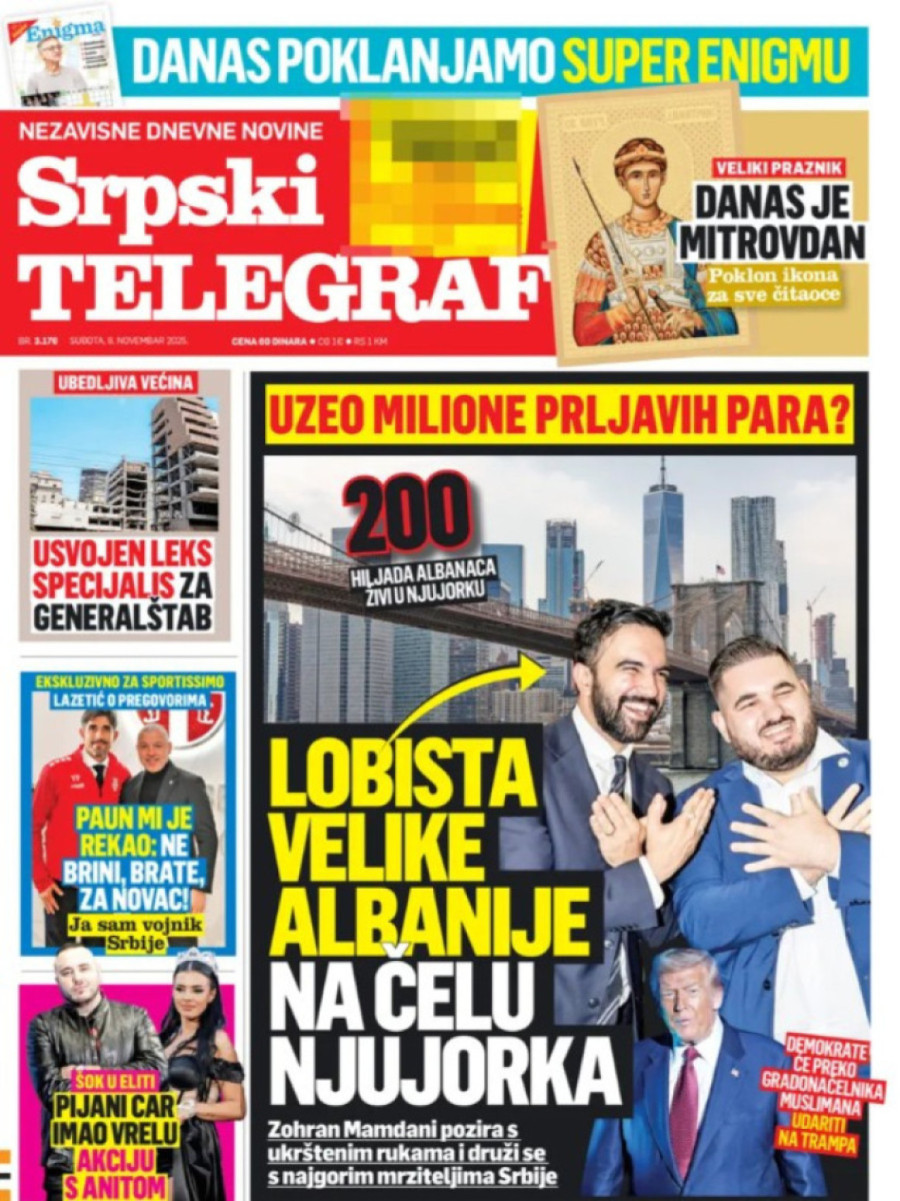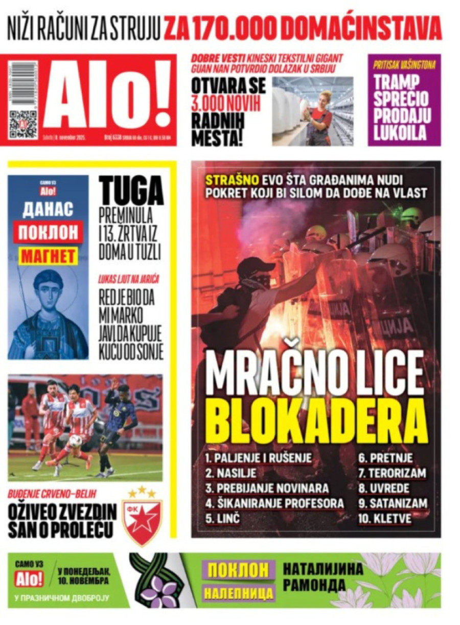 Dnevne novine u Srbiji za subotu, 8. novembar 2025. godine na naslovnim stranama najavljuju brojne aktuelne društveno-političke teme i donose eksluzivne priče.