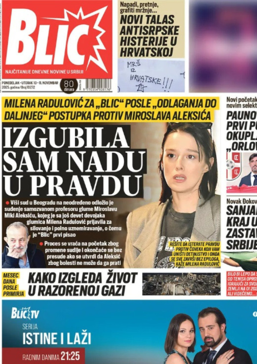 Dnevne novine u Srbiji za ponedeljak, 10. novembar 2025. godine na naslovnim stranama najavljuju brojne aktuelne društveno-političke teme i donose eksluzivne priče.