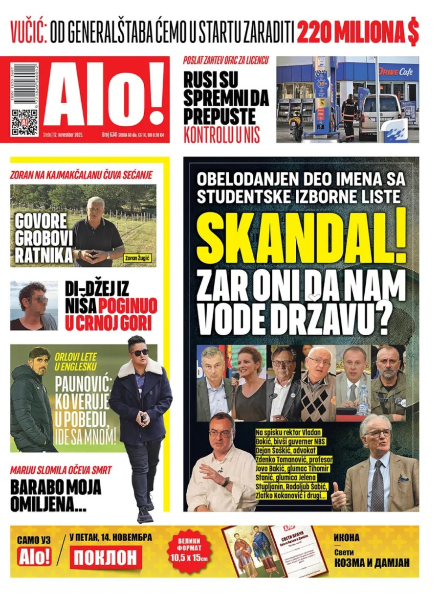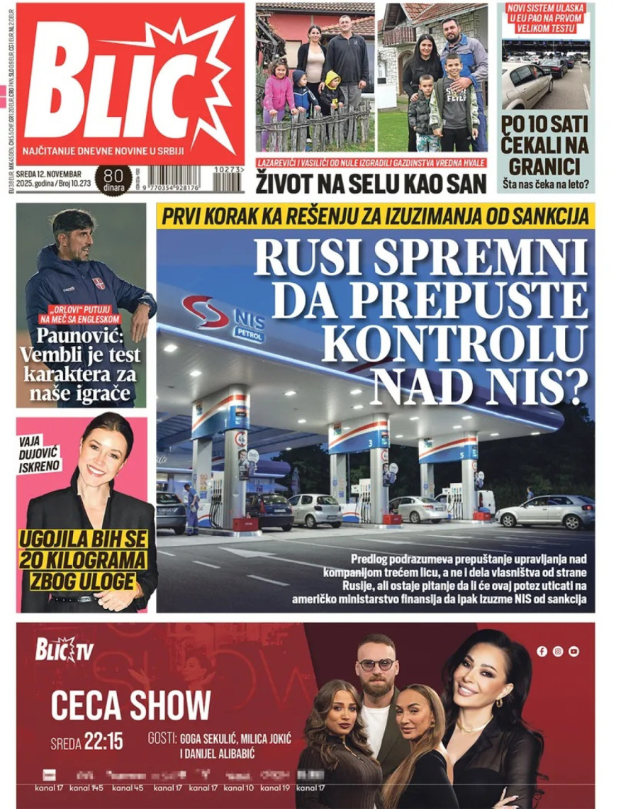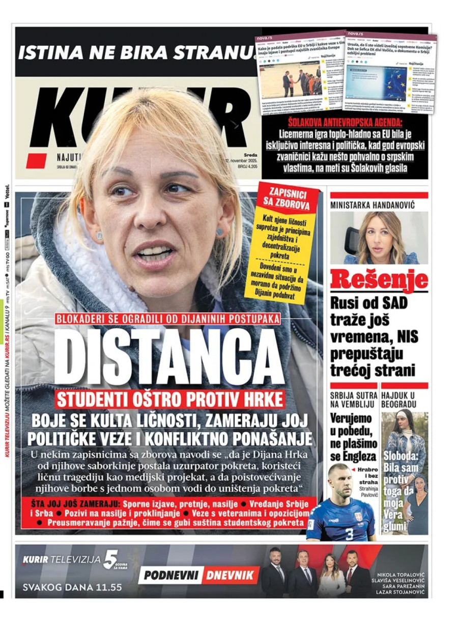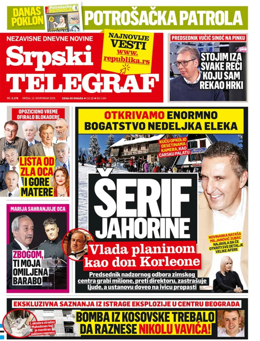 Dnevne novine u Srbiji za sredu, 12. novembar 2025. godine na naslovnim stranama najavljuju brojne aktuelne društveno-političke teme i donose eksluzivne priče.