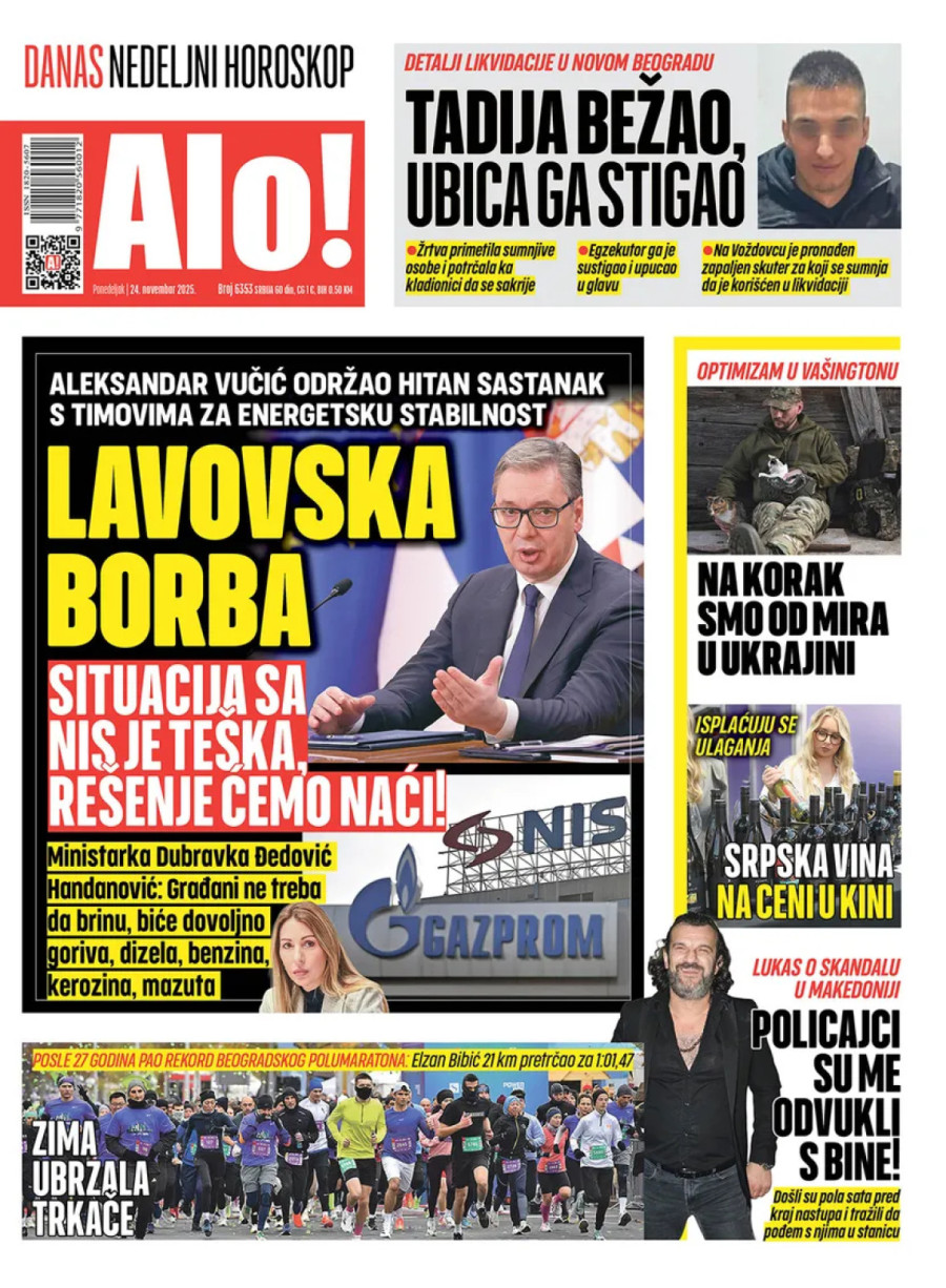 Dnevne novine u Srbiji za ponedeljak, 24. novembar 2025. godine na naslovnim stranama najavljuju brojne aktuelne društveno-političke teme i donose ekskluzivne priče.