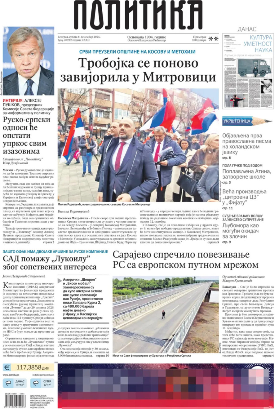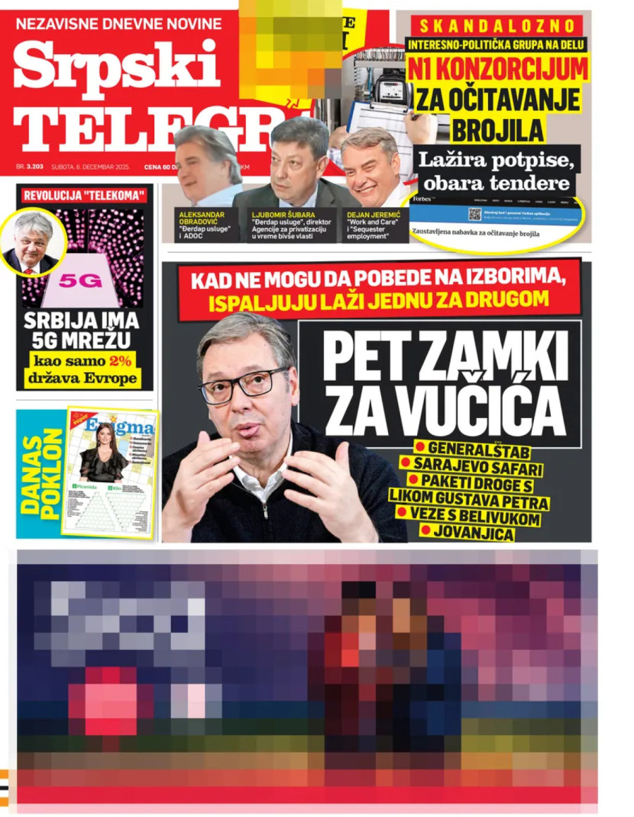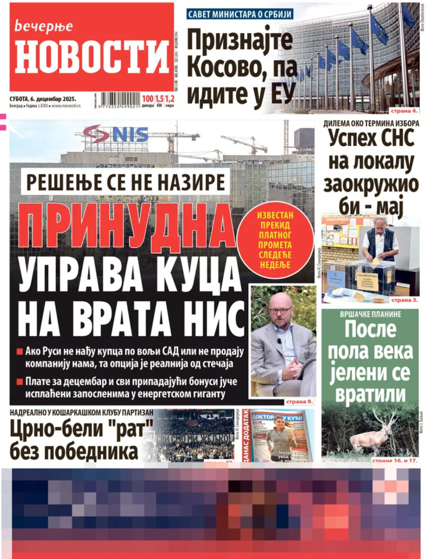 Dnevne novine u Srbiji za subotu, 6. decembar 2025. godine na naslovnim stranama najavljuju brojne aktuelne društveno-političke teme i donose ekskluzivne priče.