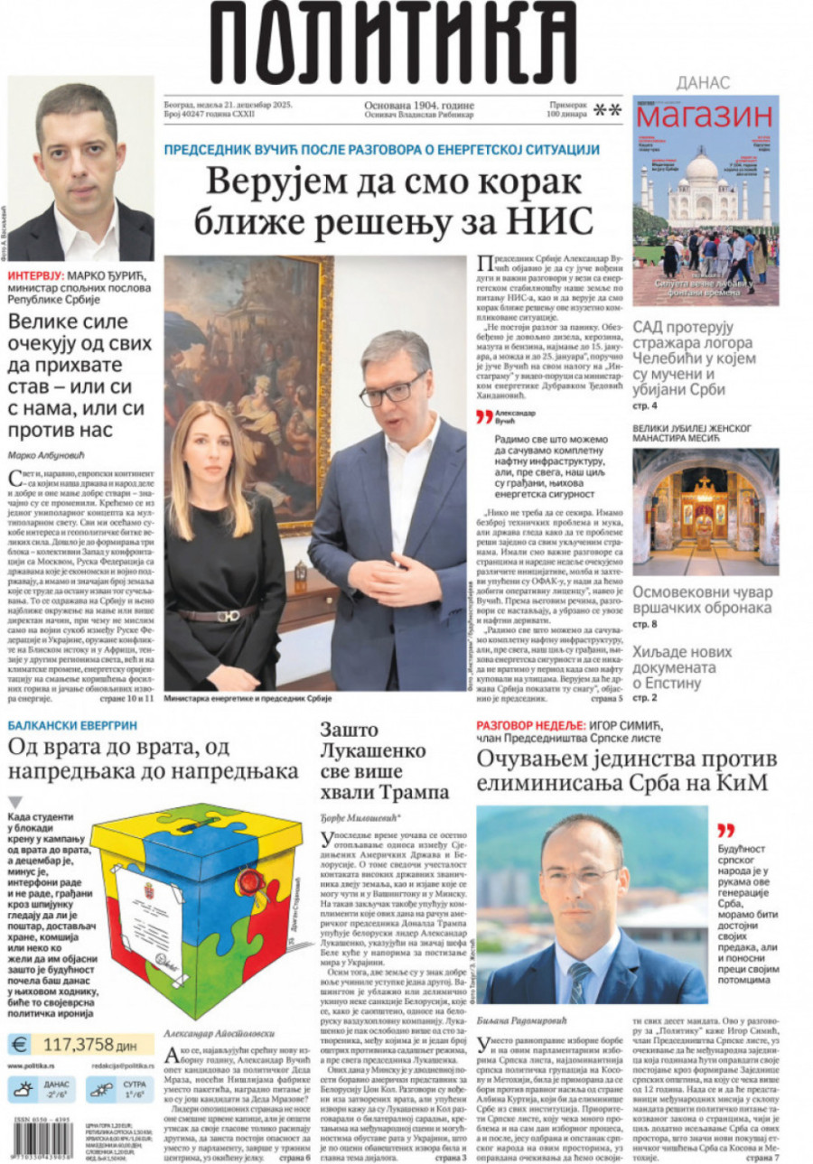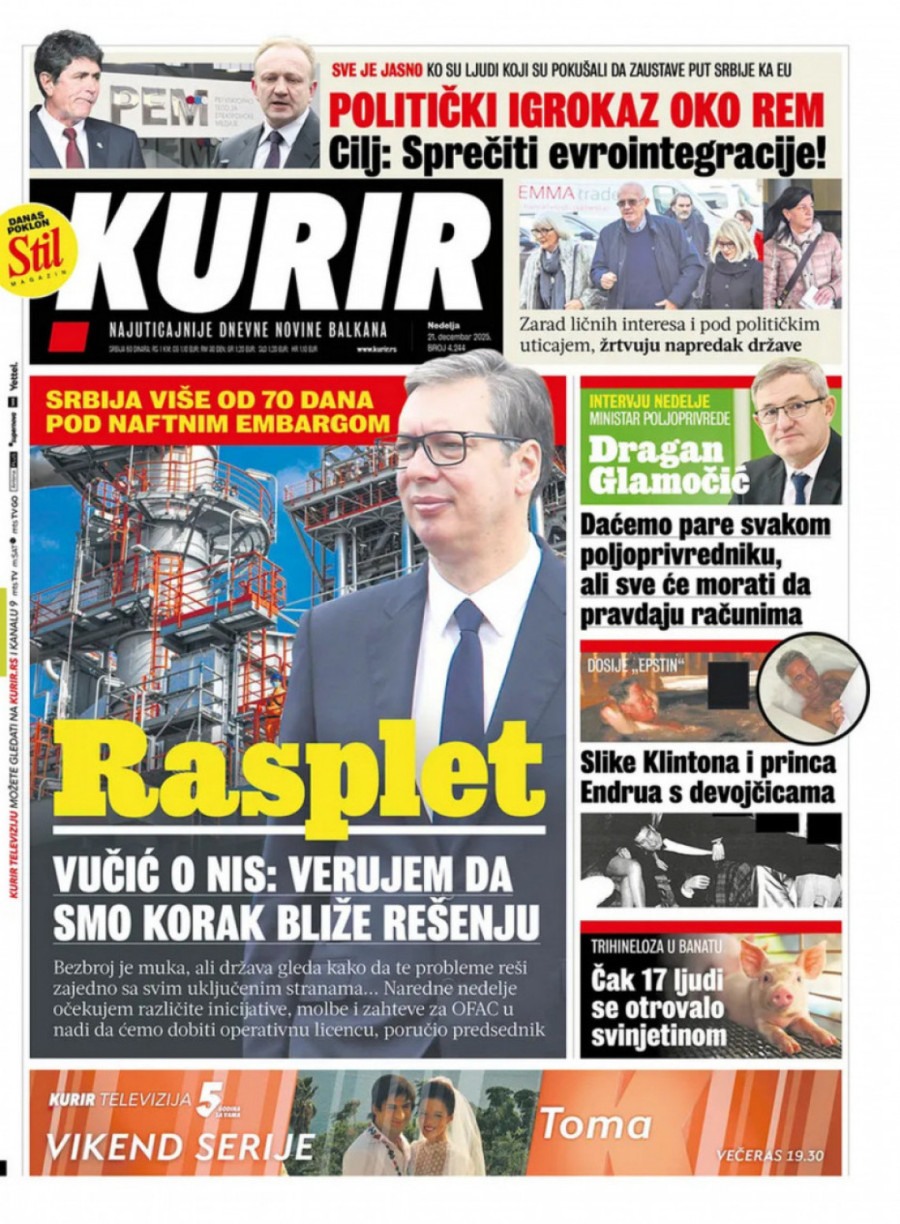 Dnevne novine u Srbiji za nedelju, 21. decembar 2025. godine na naslovnim stranama najavljuju brojne aktuelne društveno-političke teme i donose eksluzivne priče.