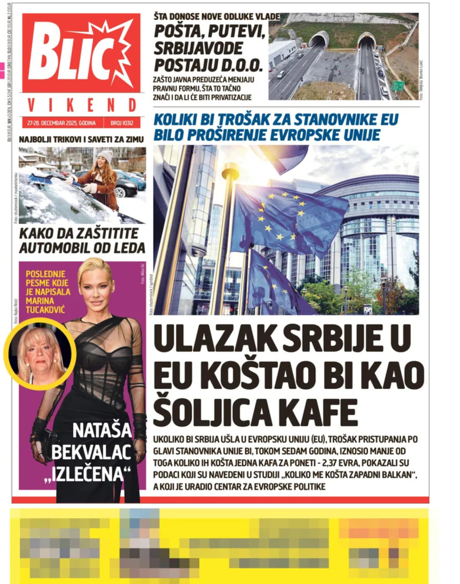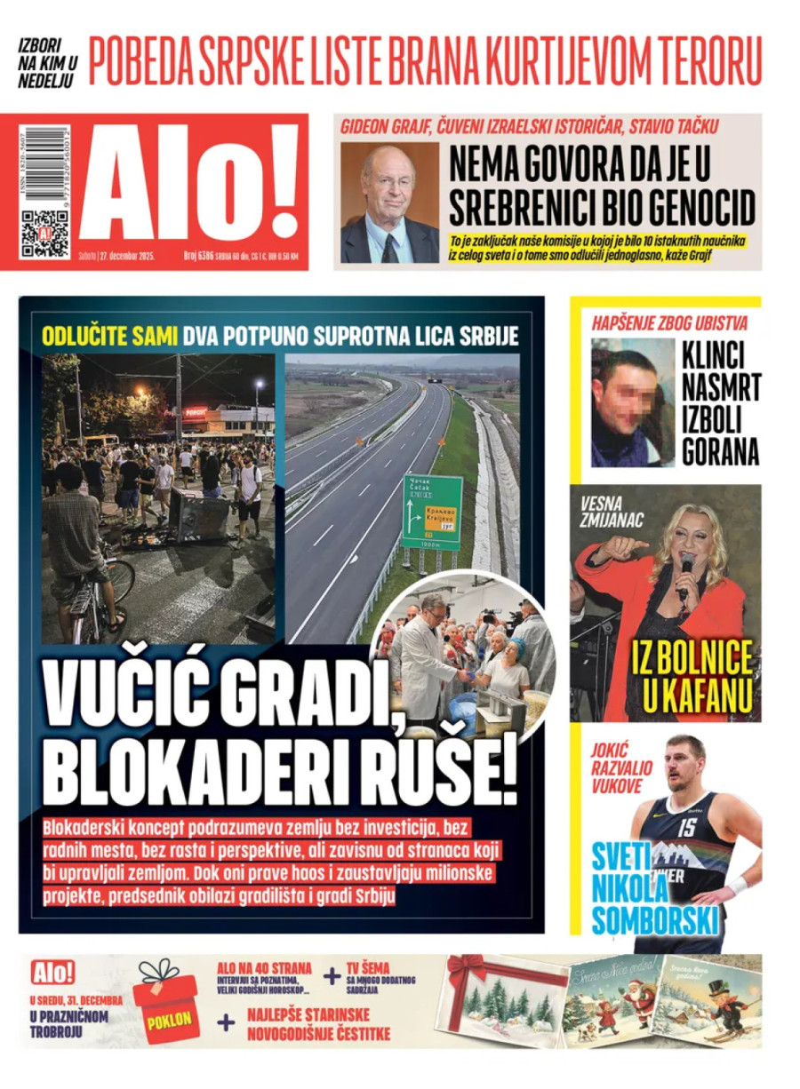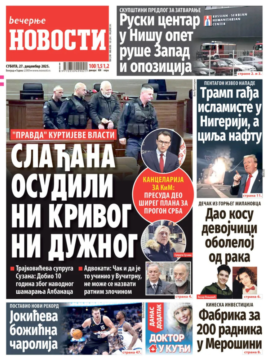 Dnevne novine u Srbiji za subotu, 27. decembar 2025. godine na naslovnim stranama najavljuju brojne aktuelne društveno-političke teme i donose eksluzivne priče.