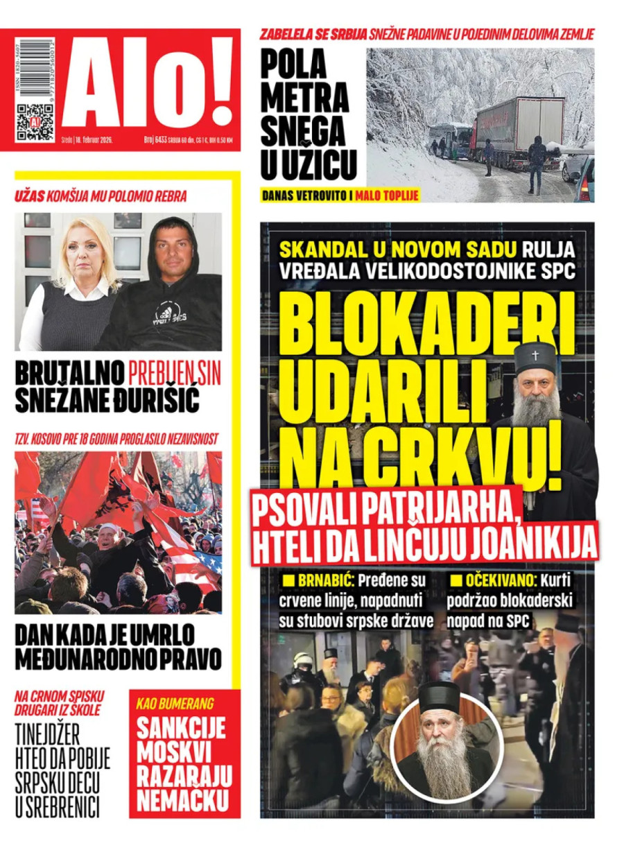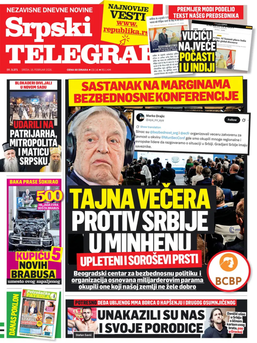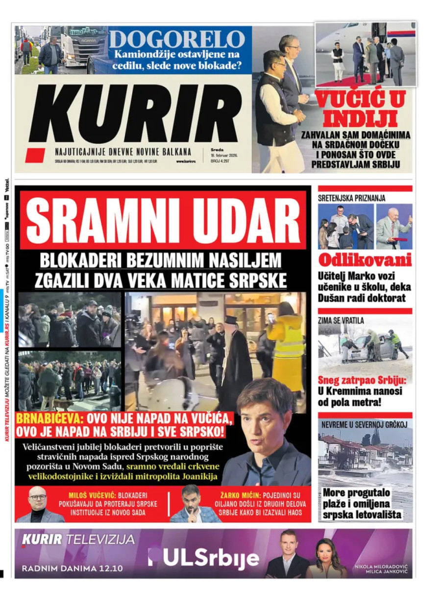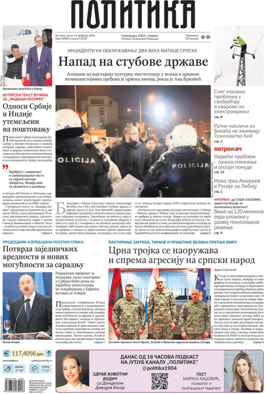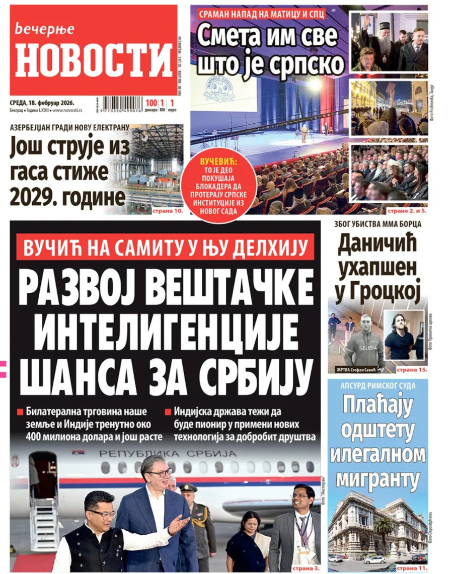 Dnevne novine u Srbiji za sredu, 18. februar 2026. godine na naslovnim stranama najavljuju brojne aktuelne društveno-političke teme i donose eksluzivne priče.