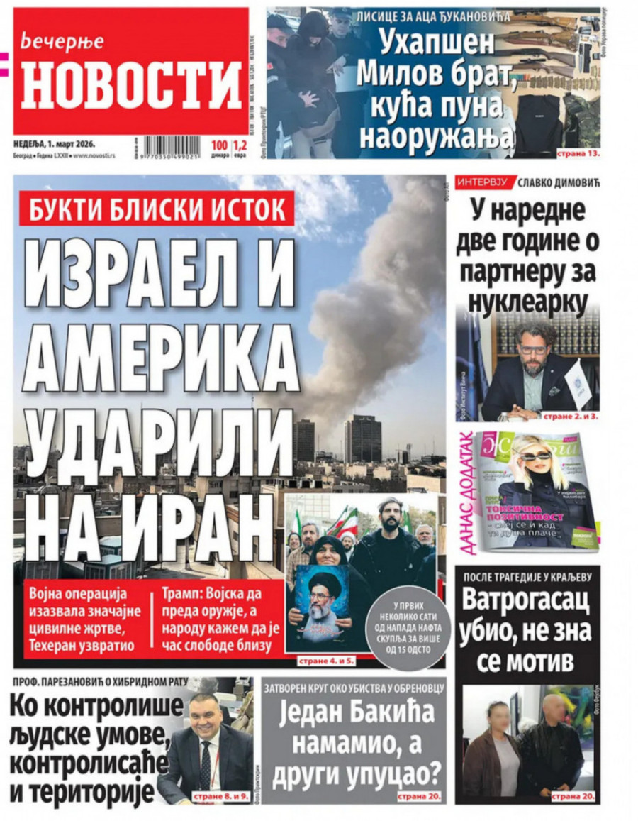 SAD i Izrael su u subotu pokrenuli napad na Iran. Američki predsednik Donald Tramp je rekao da je vrhovni verski lider ajatolah Irana Ali Hamnei likvidiran. Iranske bombe padaju po Bliskom istoku.