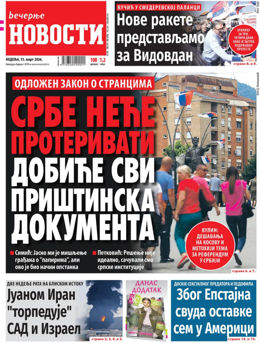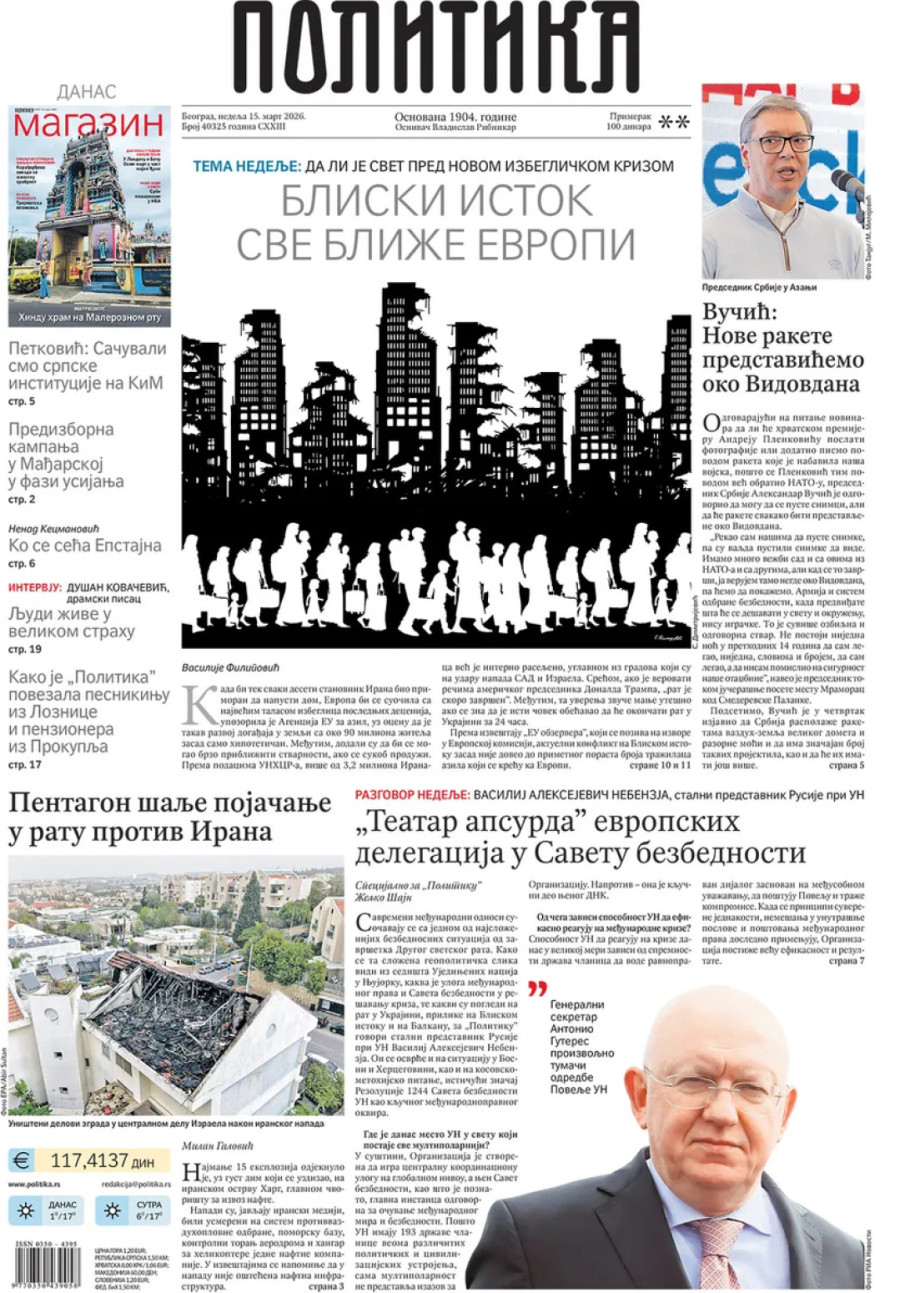 Sukobi na Bliskom istoku u ratu SAD i Izraela protiv Irana nastavljaju se i 15. dana. Predsednik SAD Donald Tramp izjavio je da je američka vojska snažno bombardovala strateški važno iransko ostrvo Harg, kao i da je Teheran "potpuno poražen".