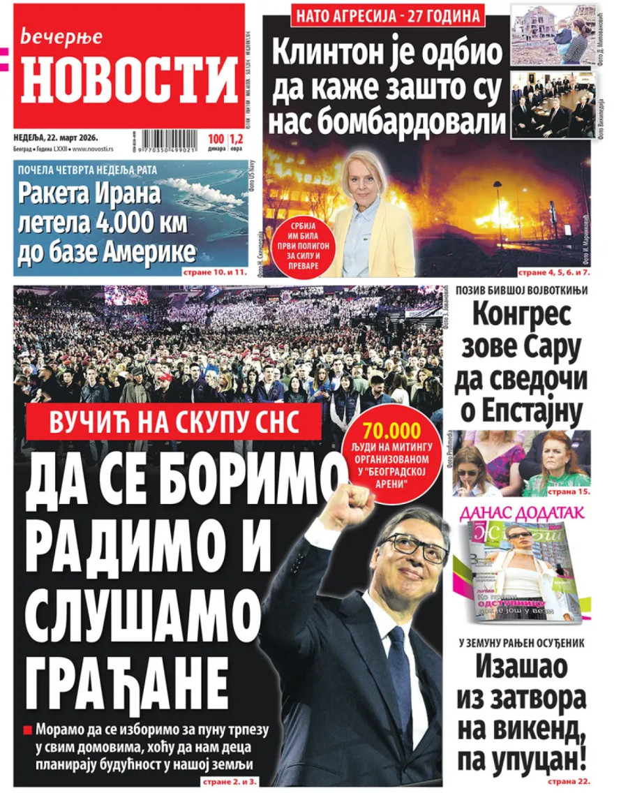Sukobi na Bliskom istoku su nastavljeni. Mediji prenose da je Iran ispalio rakete prema američko-britanskoj bazi u Indijskom okeanu, ali da rakete nisu pogodile bazu.
