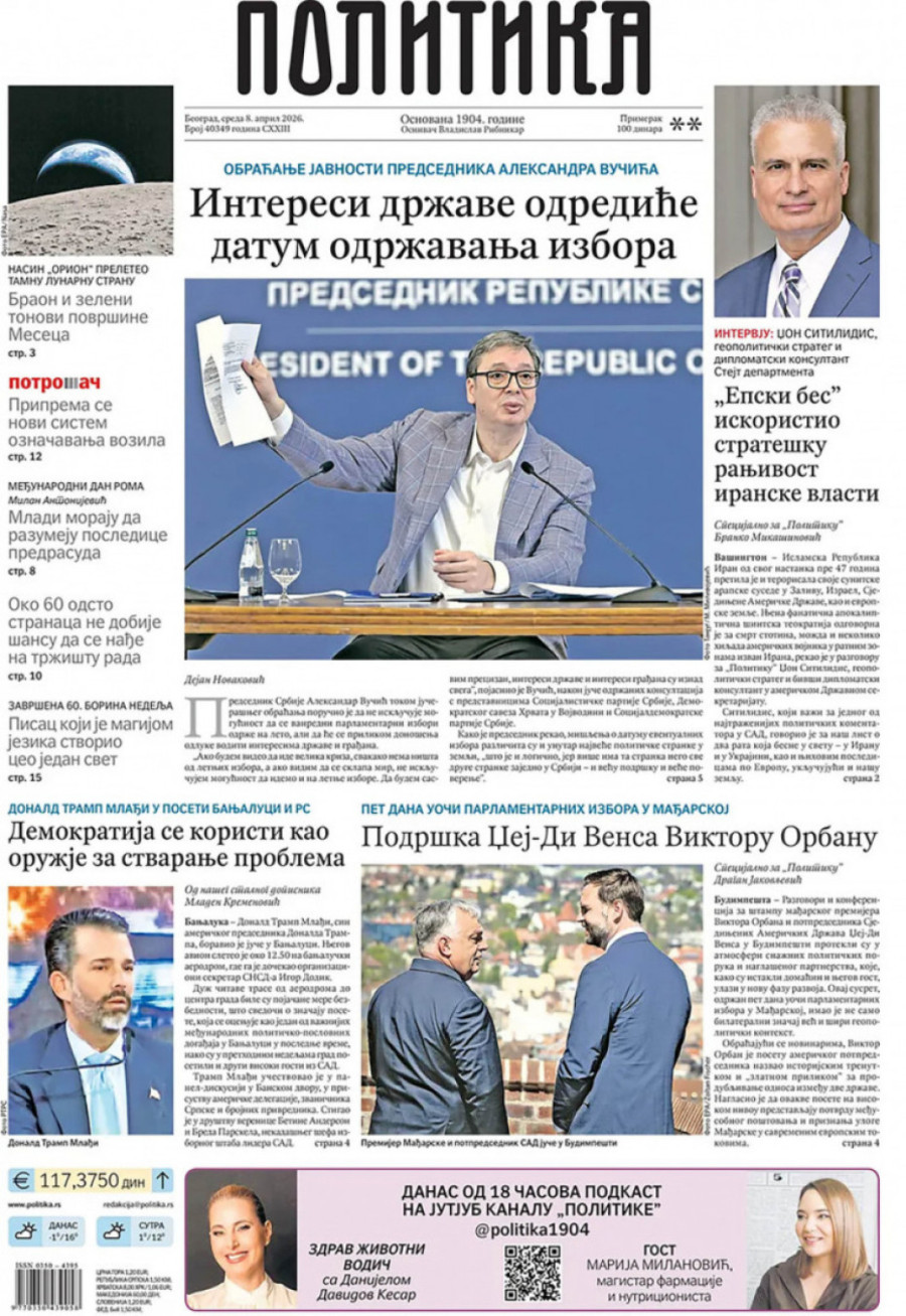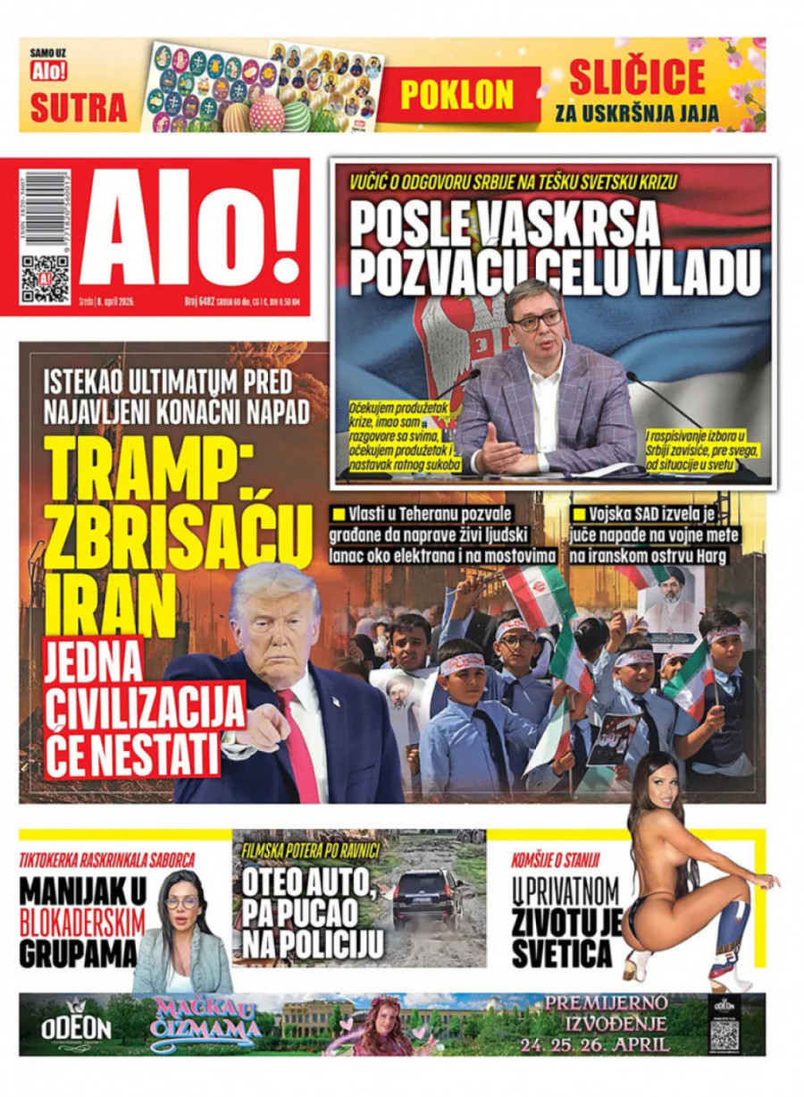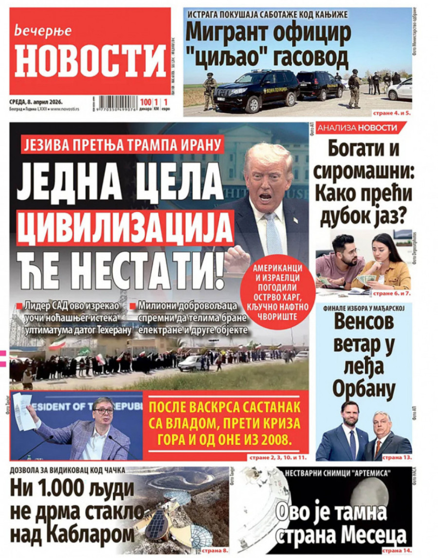 Sukobi na Bliskom istoku ušli su u 39. dan. Predsednik SAD-a Donald Tramp zapretio je Iranu da će "cela civilizacija umreti večeras" ako ne otvore Ormuski moreuz. Nakon toga, Iran je prekinuo direktnu komunikaciju sa SAD.