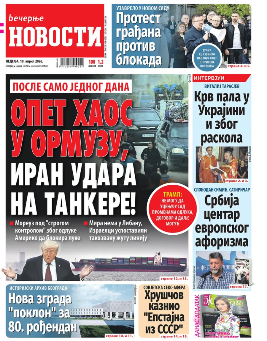 Sukob na Bliskom istoku – 50. dan. Iran je saopštio da je Ormuski moreuz otvoren tokom trajanja primirja. Najveći nosač aviona u svetu, američki "Džerald R. Ford", ponovo je uplovio u vode Bliskog istoka.
