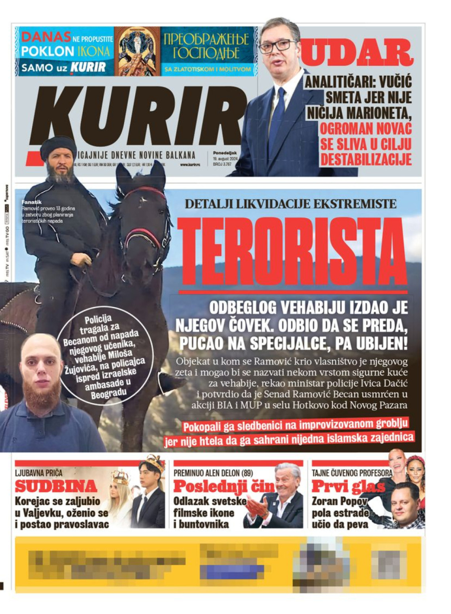 Naslovne: "Zapad naoružava region, Srbija sama jača vojsku"; "Uklonjen sejač zla, odahnuli i Bošnjaci"
