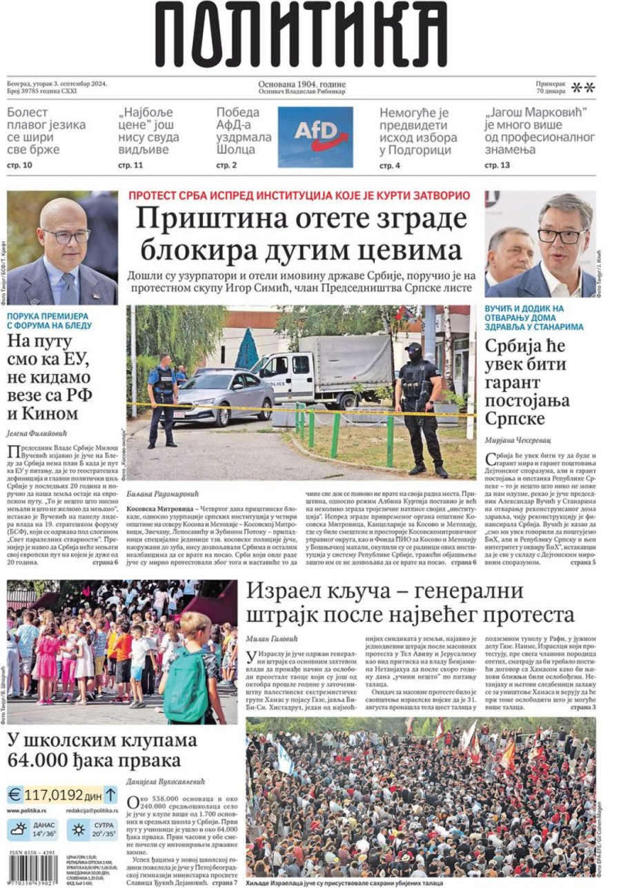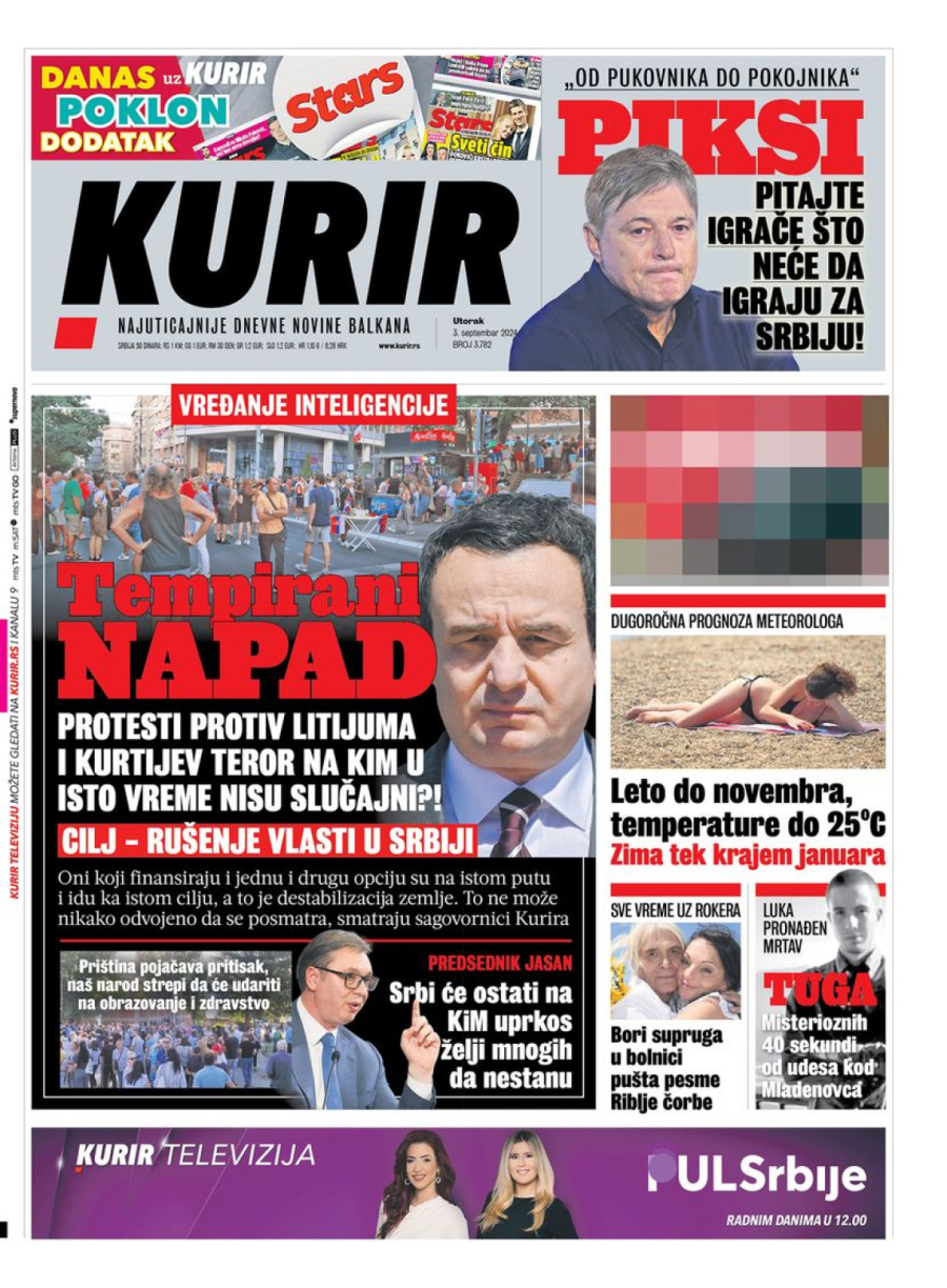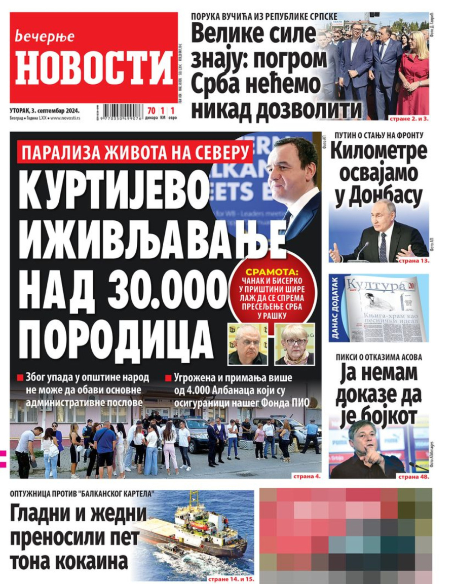 Dnevne novine u Srbiji za utorak, 3. septembar 2024. godine, na naslovnim stranama najavljuju brojne aktuelne društveno-političke teme.