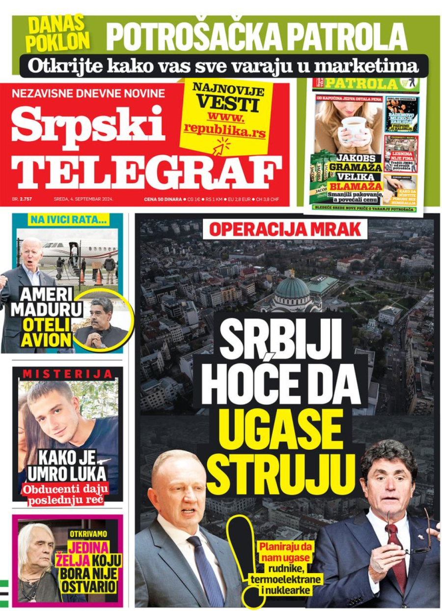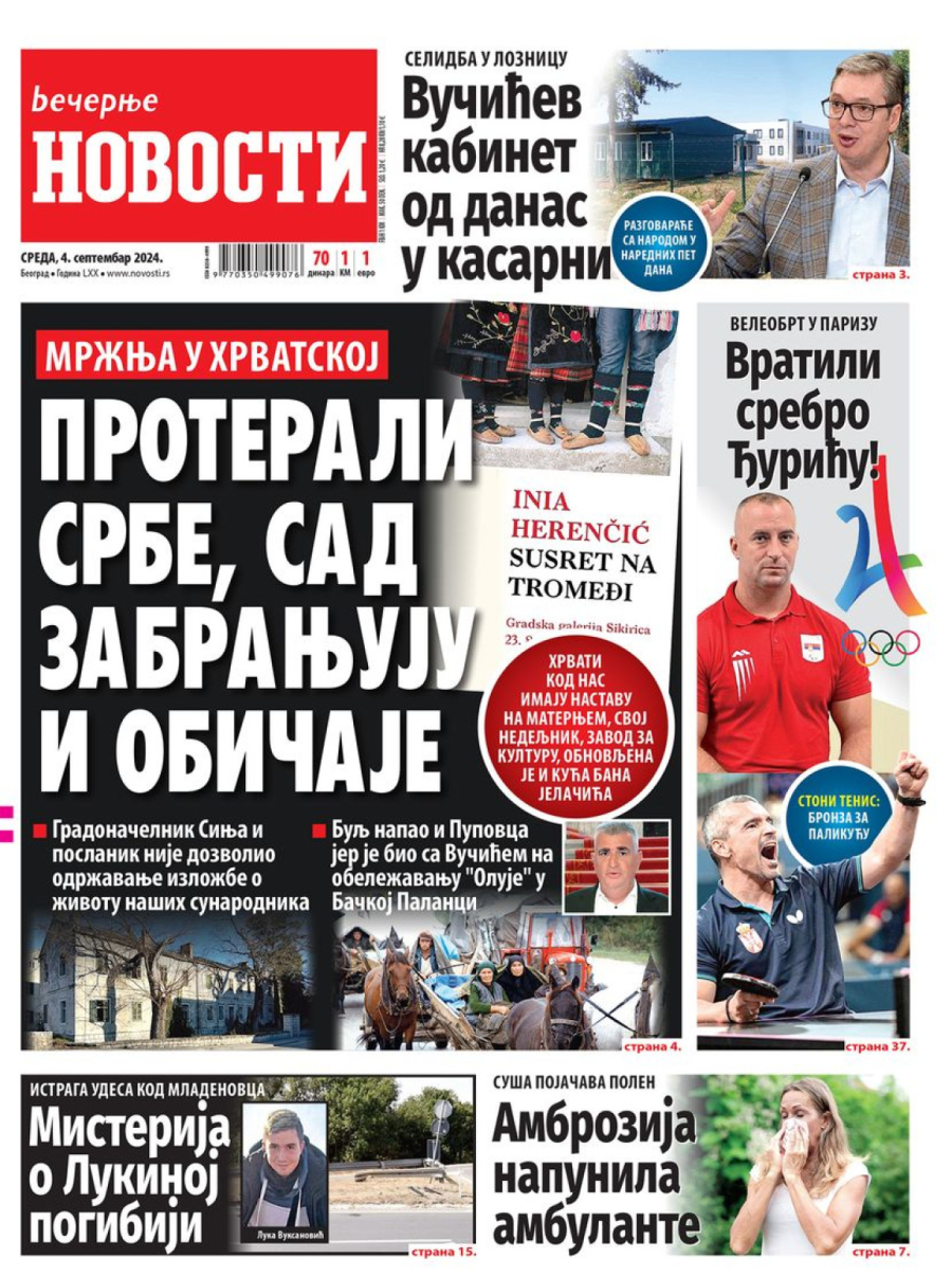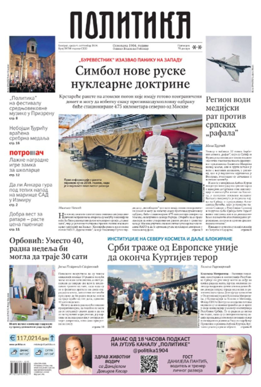 Dnevne novine u Srbiji za sredu, 4. septembar 2024. godine, na naslovnim stranama najavljuju brojne aktuelne društveno-političke teme.