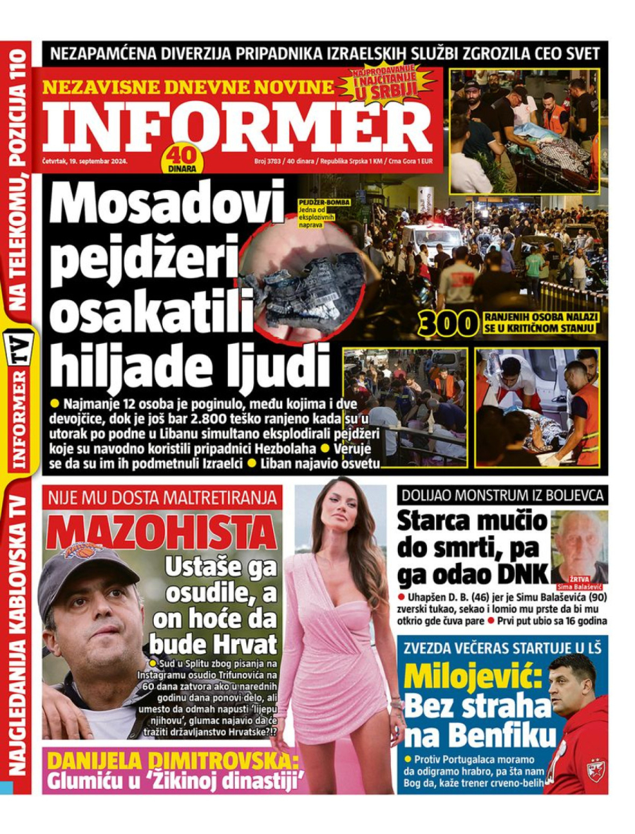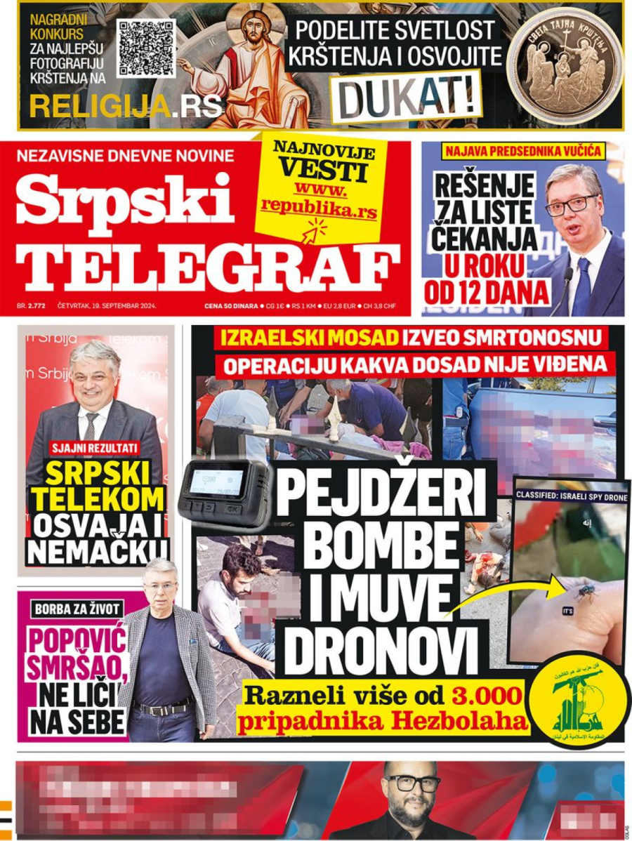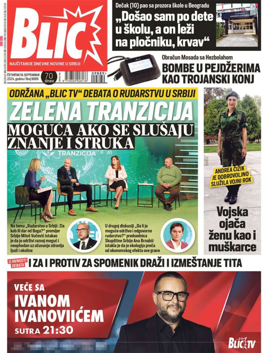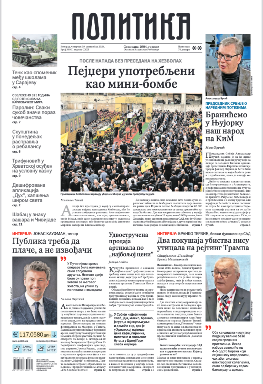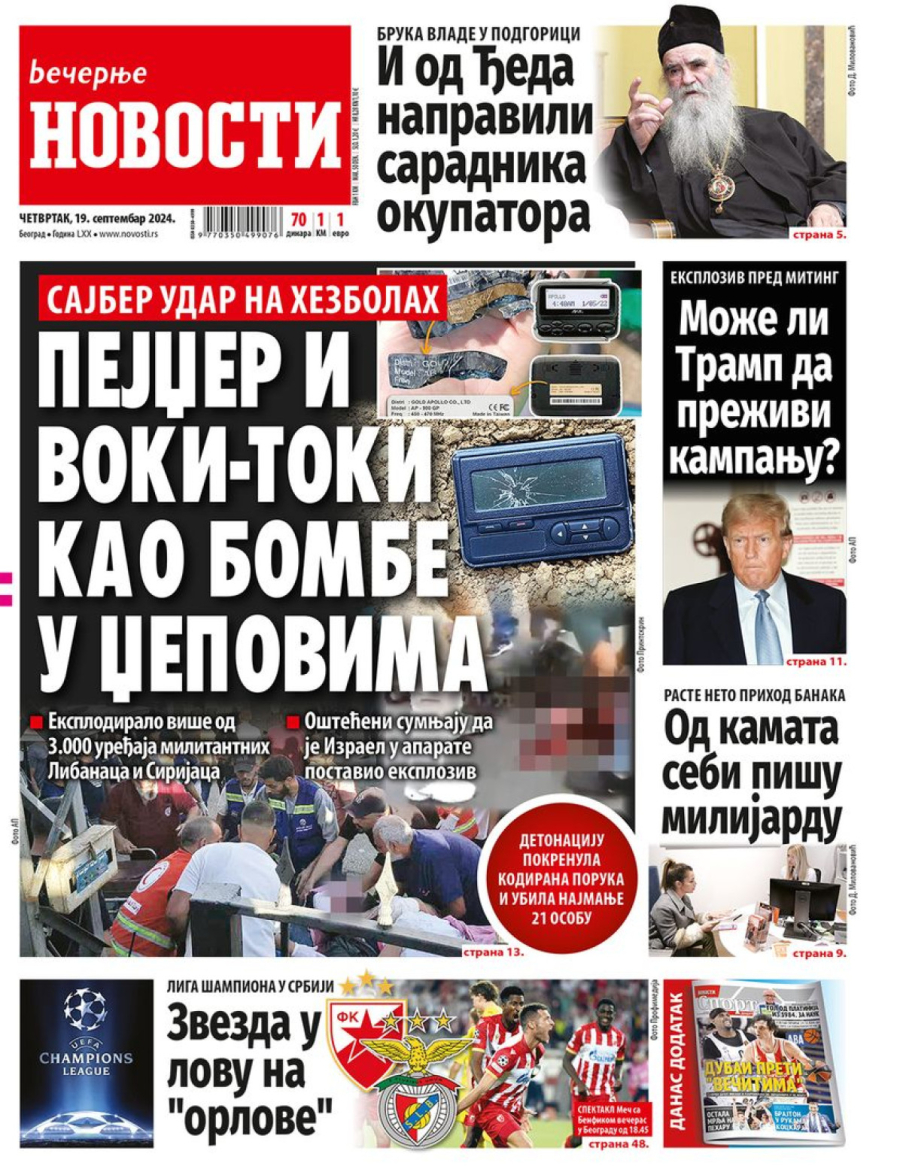 Dnevne novine u Srbiji za četvrtak 19. septembar 2024. godine, na naslovnim stranama najavljuju brojne aktuelne društveno-političke teme.