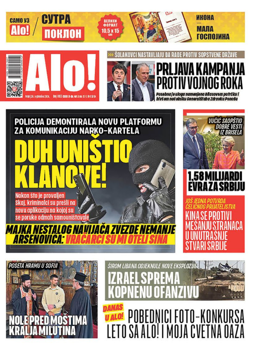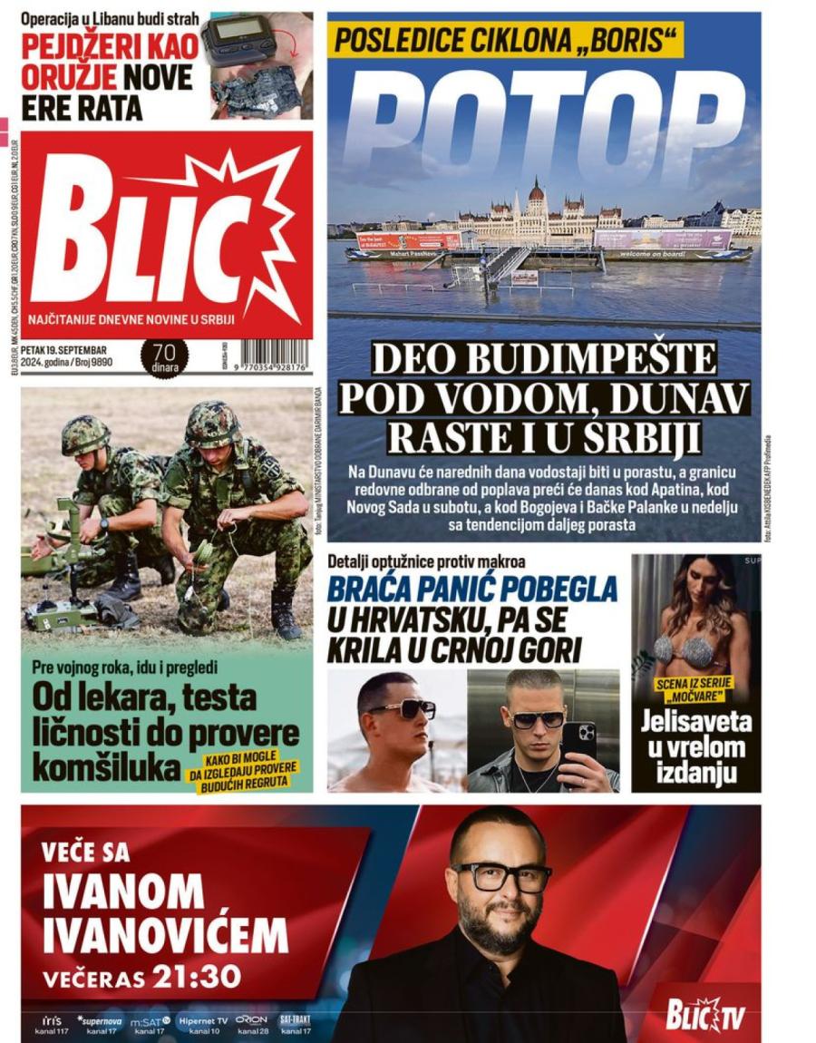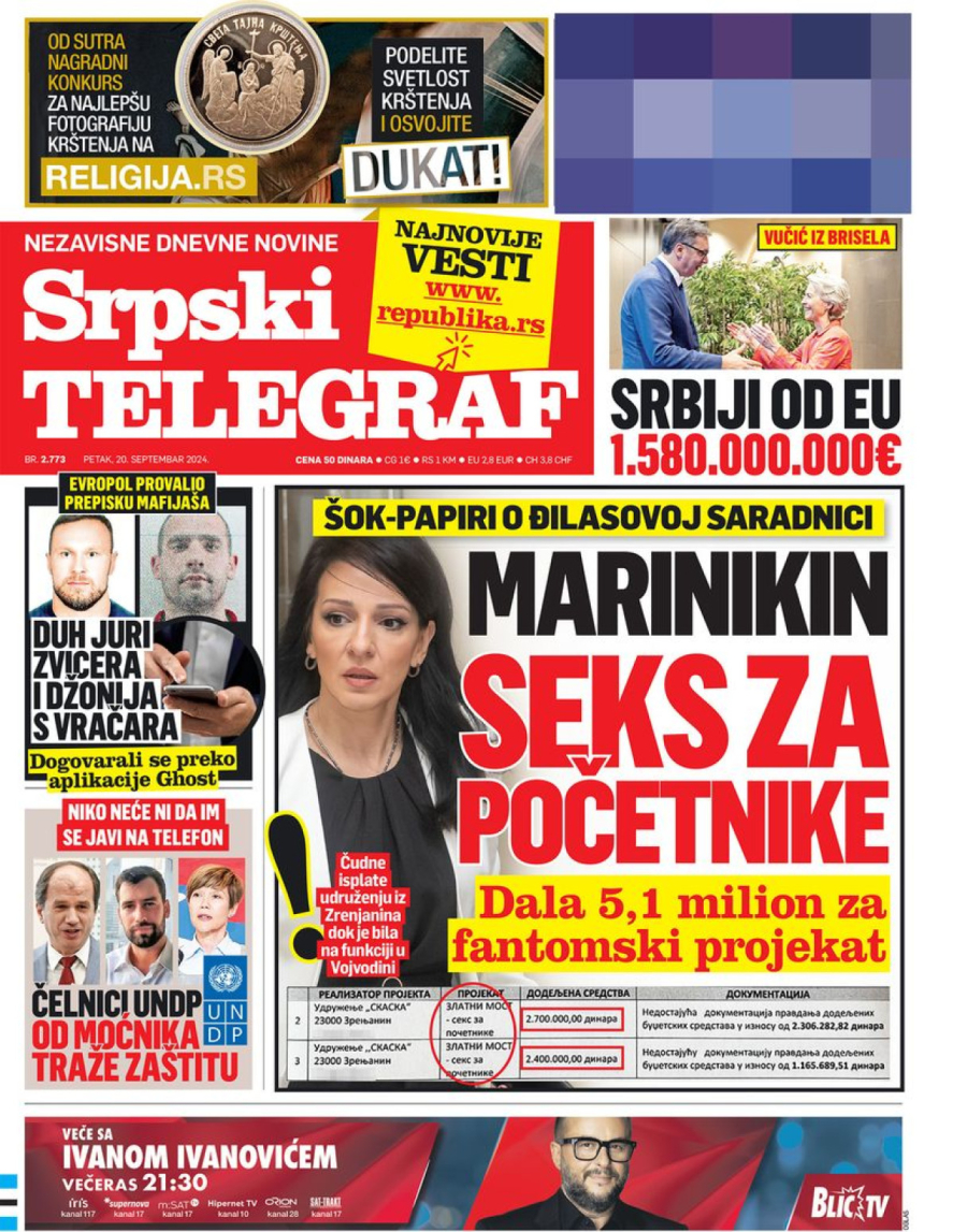 Dnevne novine u Srbiji za petak, 20. septembar 2024. godine, na naslovnim stranama najavljuju brojne aktuelne društveno-političke teme i donose ekskluzivne priče.