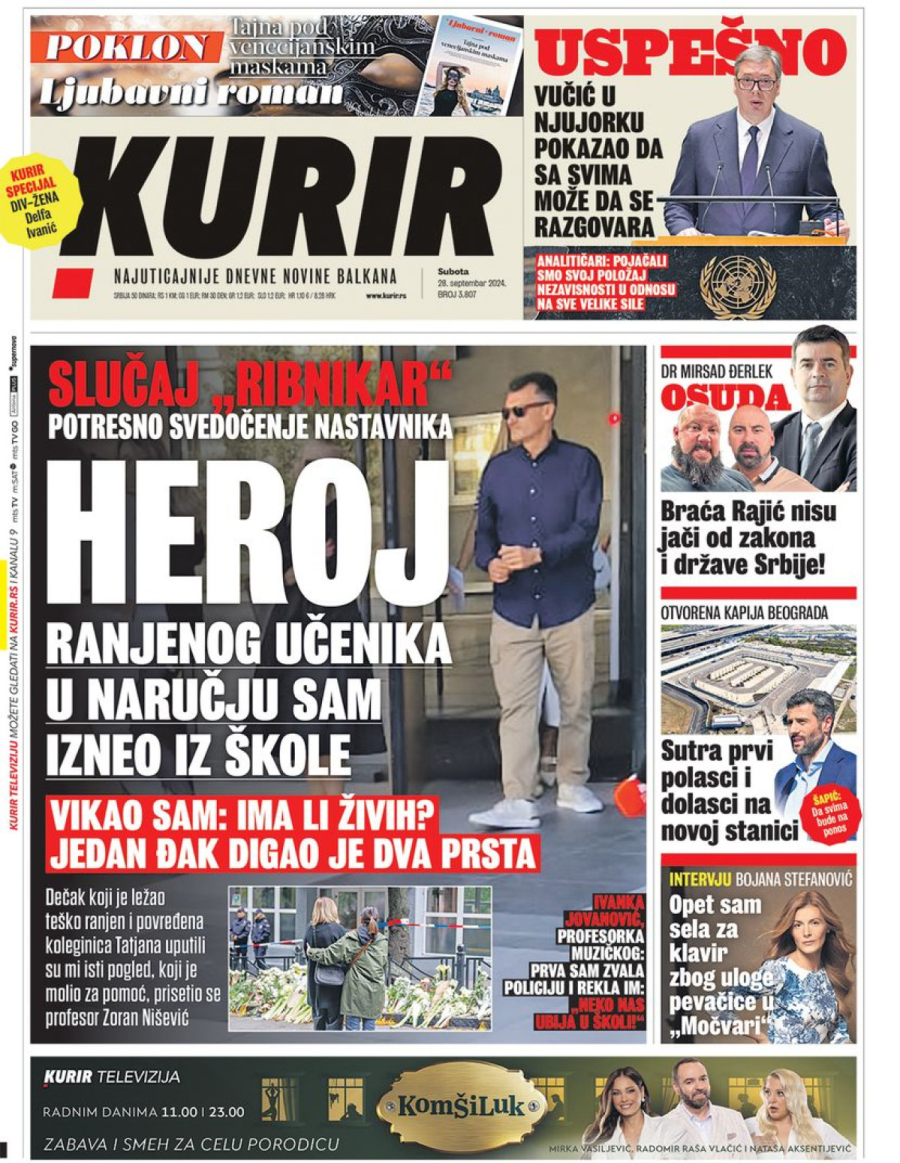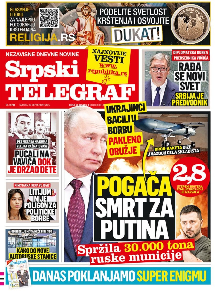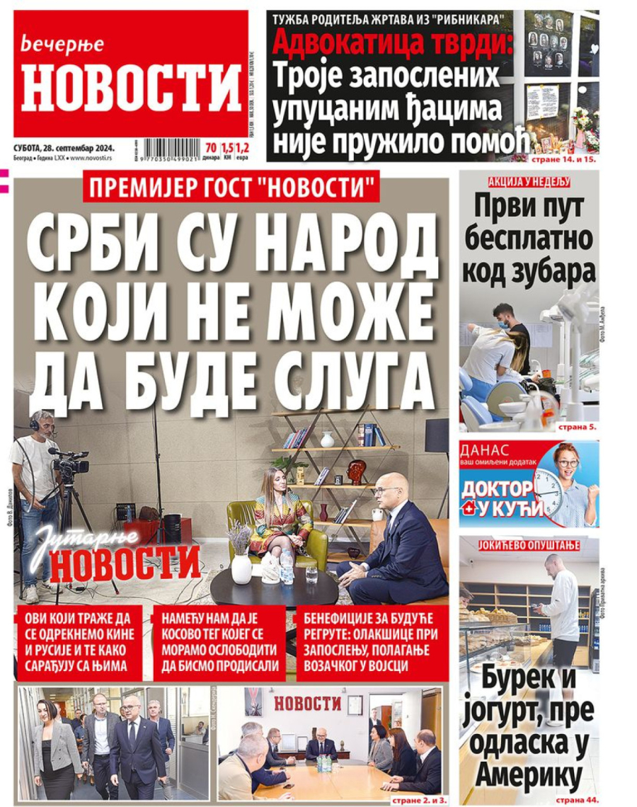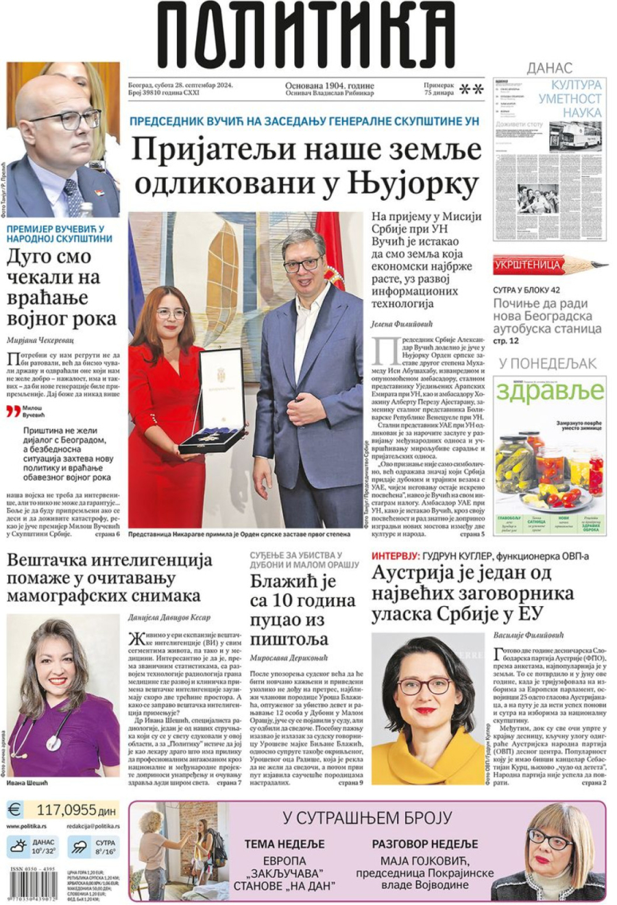 Dnevne novine u Srbiji za subotu, 28. septembar 2024. godine, na naslovnim stranama najavljuju brojne aktuelne društveno-političke teme i donose ekskluzivne priče.
