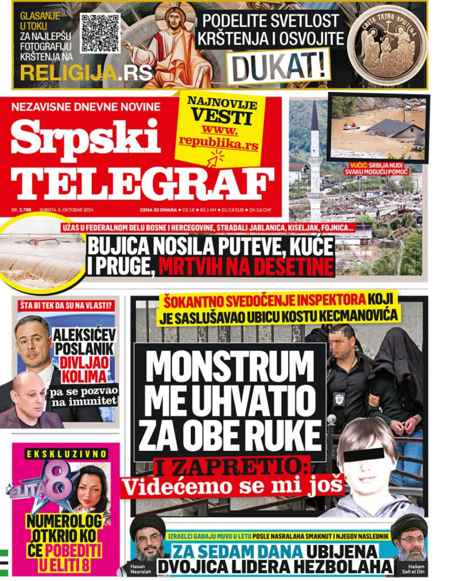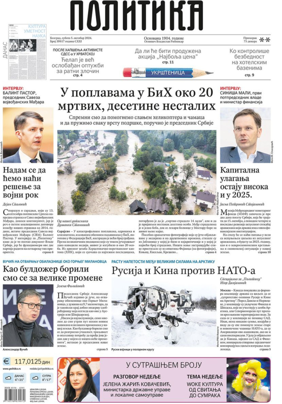 Dnevne novine u Srbiji za subotu, 5. septembar 2024. godine, na naslovnim stranama najavljuju brojne aktuelne društveno-političke teme i donose ekskluzivne priče.