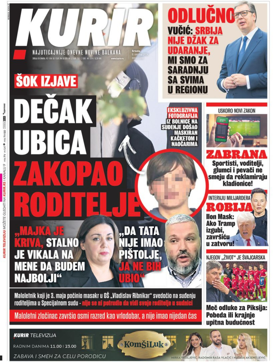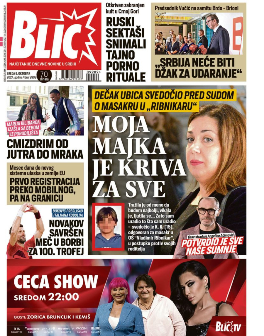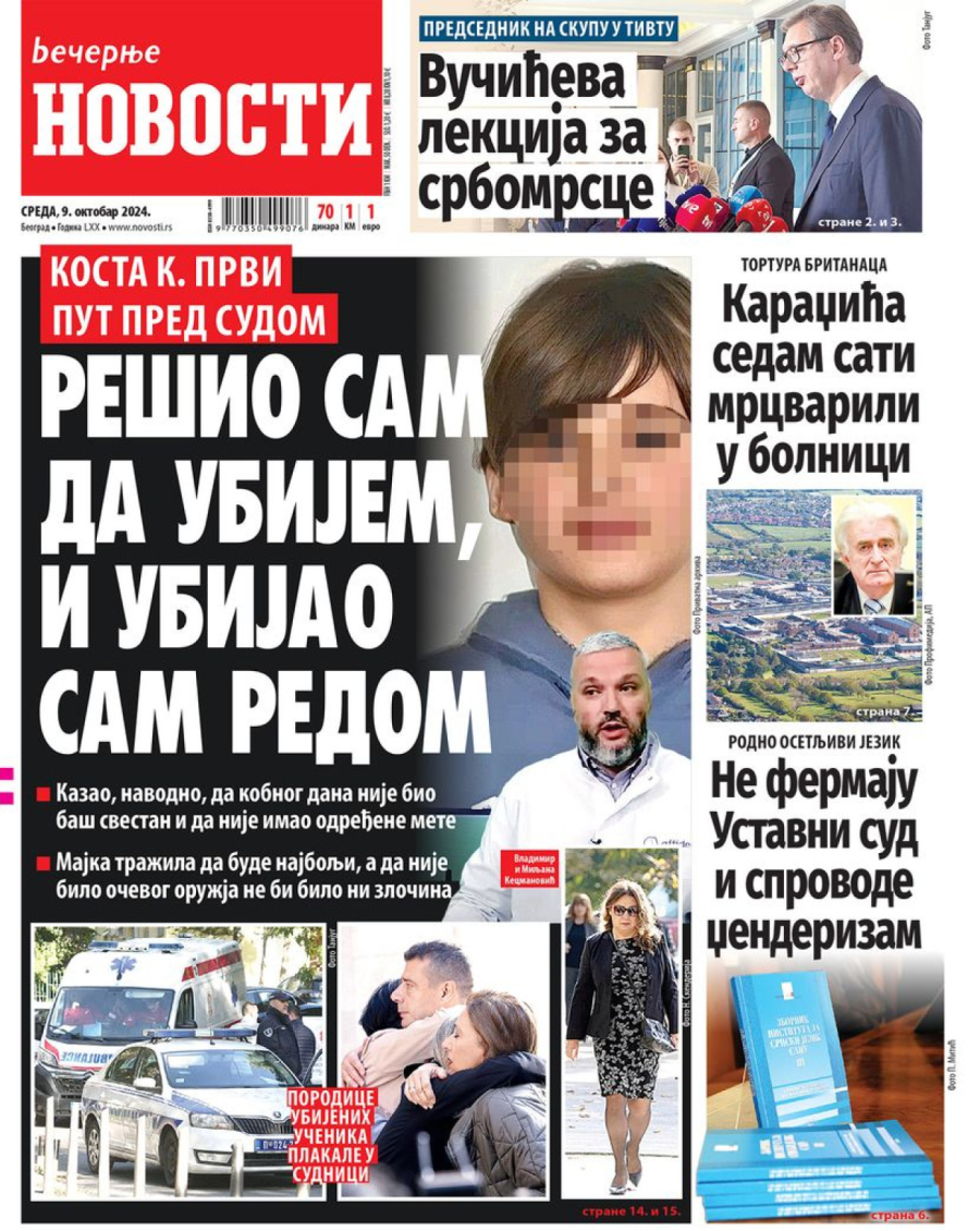 Novine: "Rešio sam da ubijem i ubijao sam redom"; "Moja majka je kriva za sve"