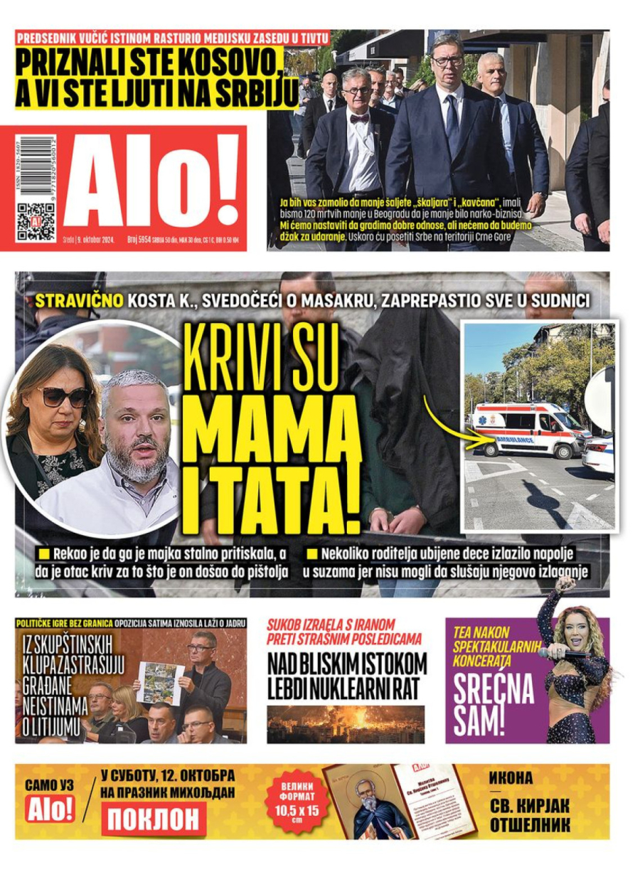 Dnevne novine u Srbiji za sredu, 9. oktobar 2024. godine, na naslovnim stranama najavljuju brojne aktuelne društveno-političke teme i donose ekskluzivne priče.