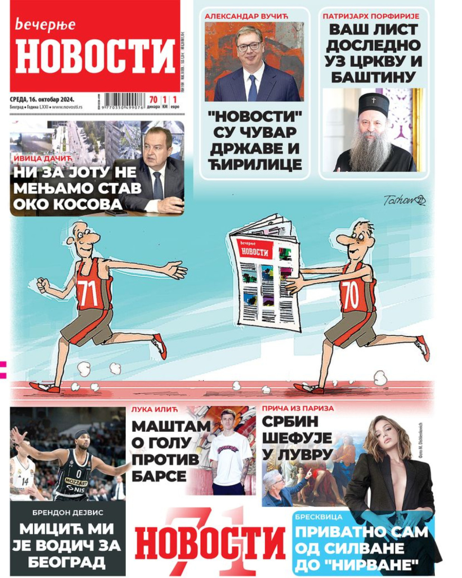Dnevne novine u Srbiji za sredu, 16. oktobar 2024. godine, na naslovnim stranama najavljuju brojne aktuelne društveno-političke teme i donose ekskluzivne priče.