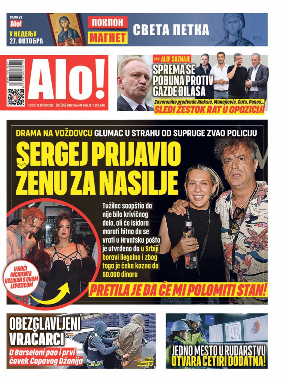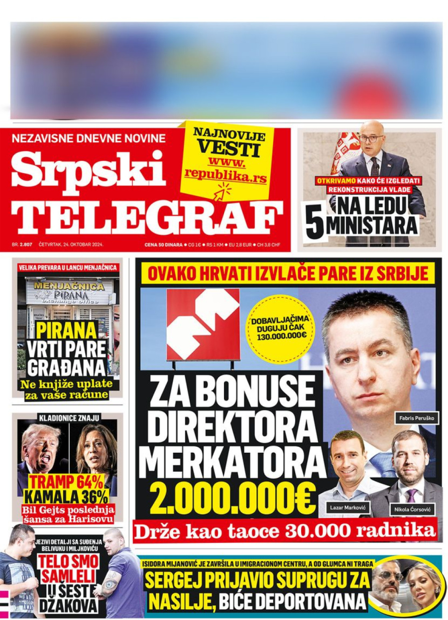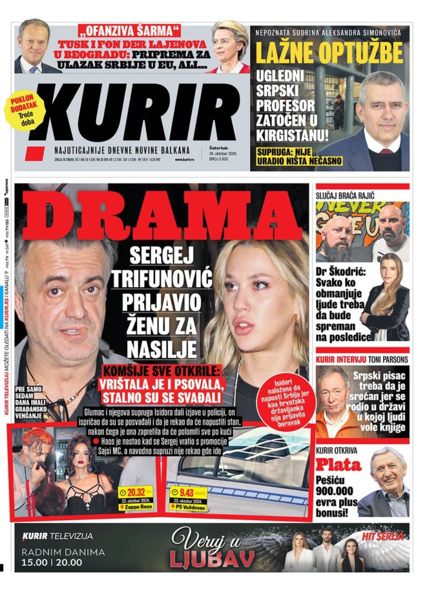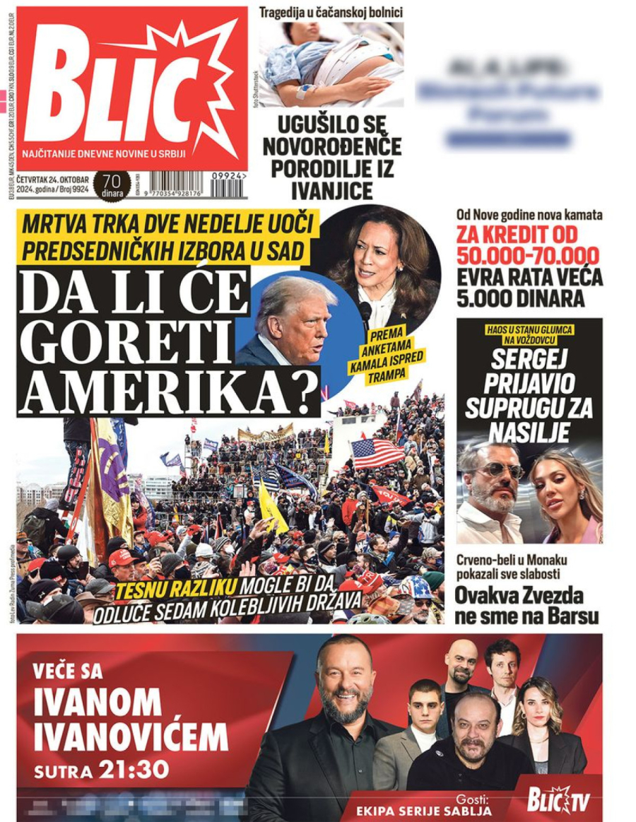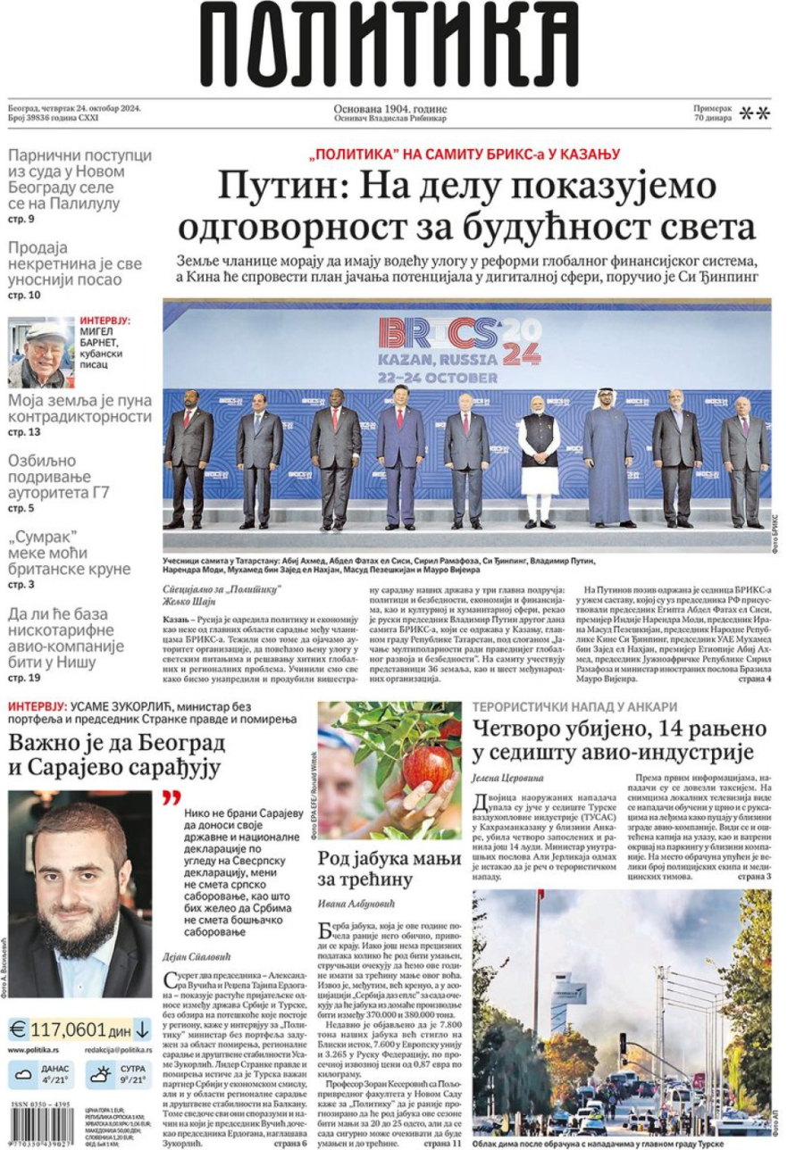 Dnevne novine u Srbiji za četvrtak 24. oktobar na naslovnim stranama najavljuju brojne aktuelne društveno-političke teme.