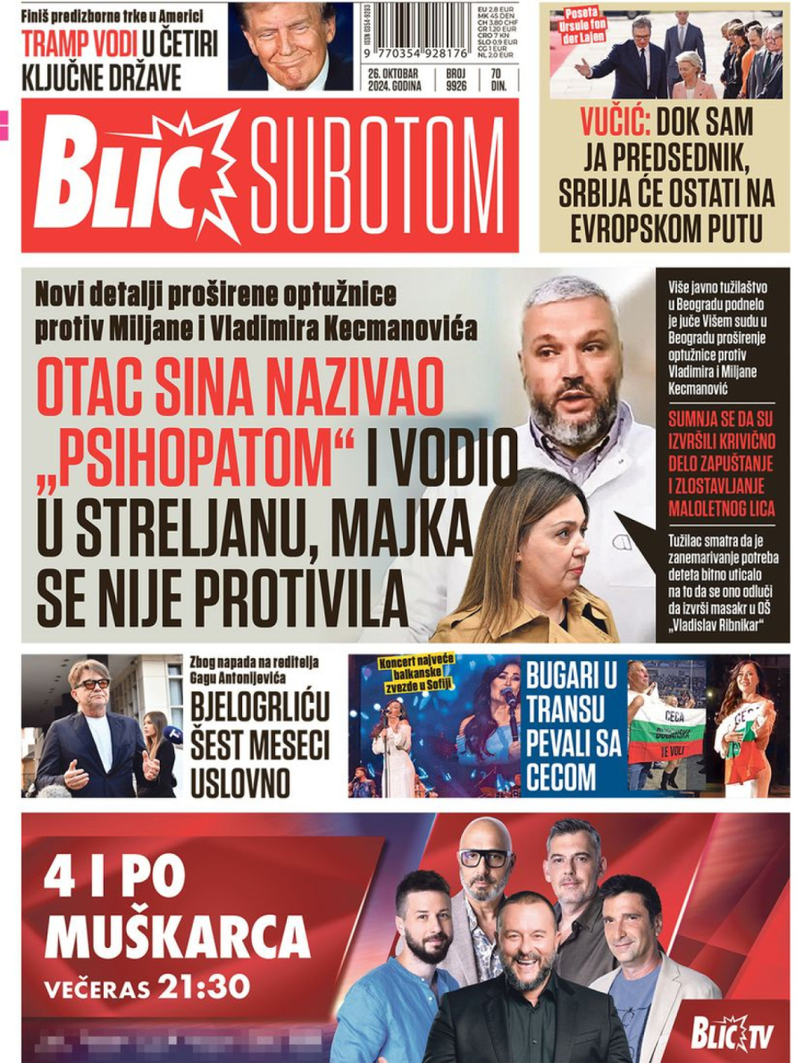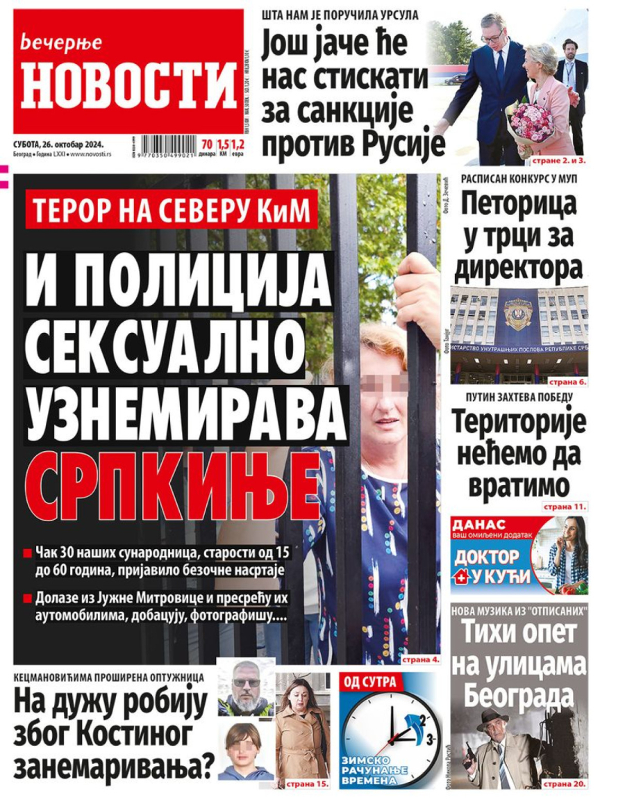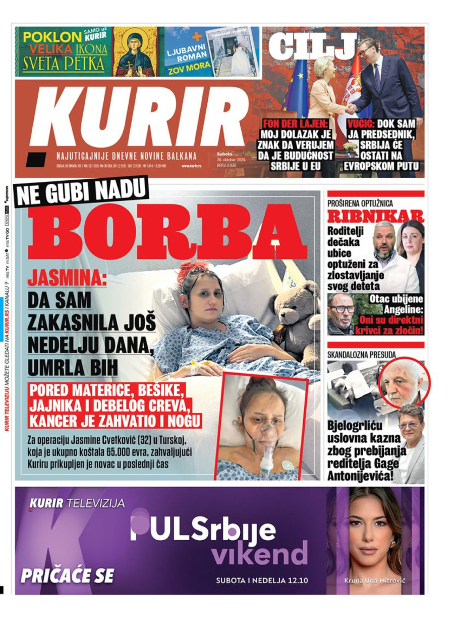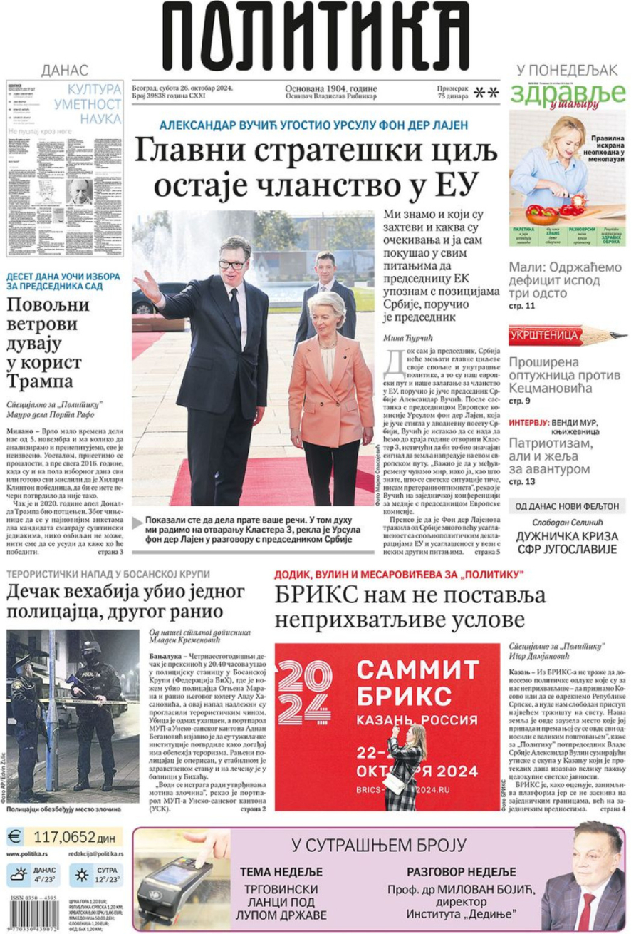 Dnevne novine u Srbiji za subotu, 26. oktobar 2024. godine, na naslovnim stranama najavljuju brojne aktuelne društveno-političke teme i donose ekskluzivne priče.