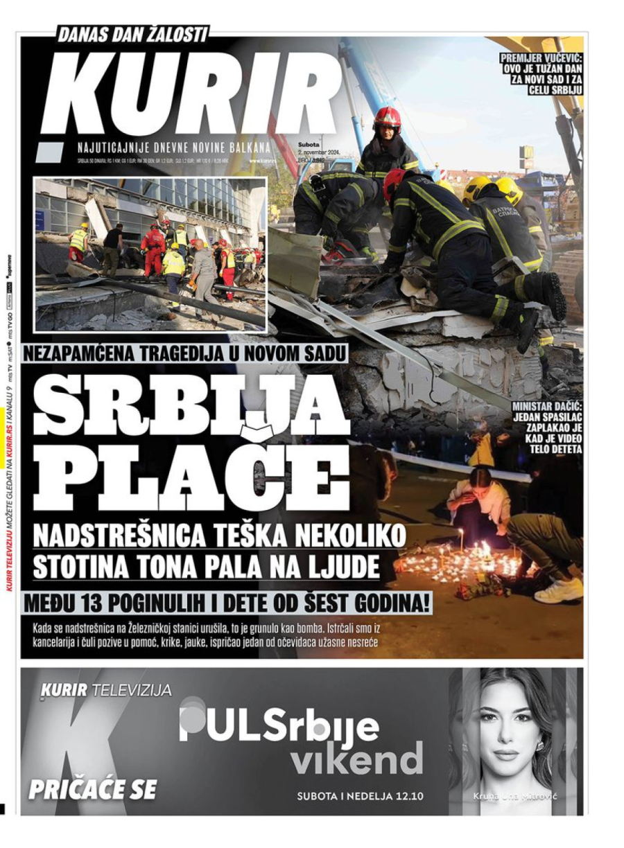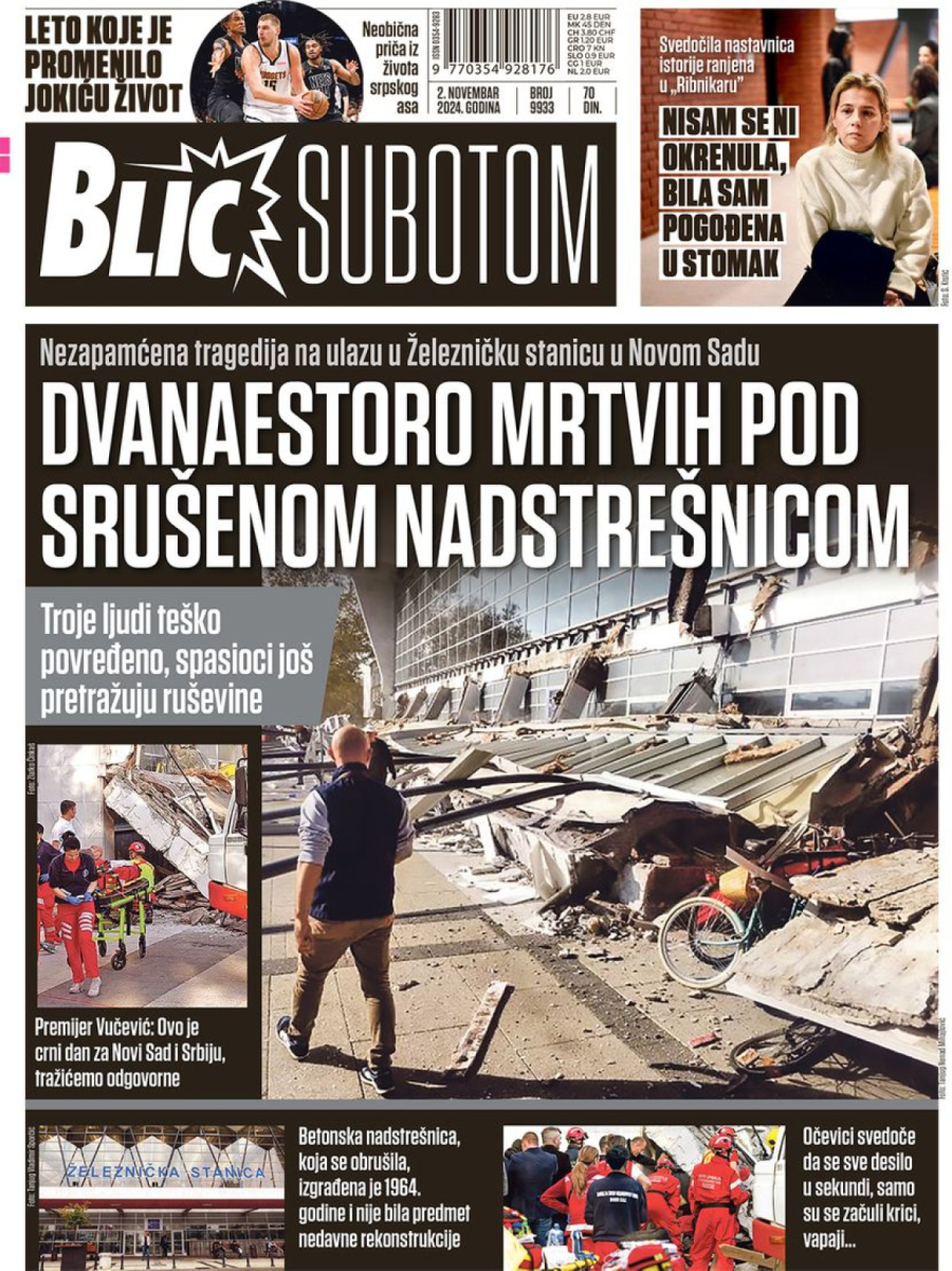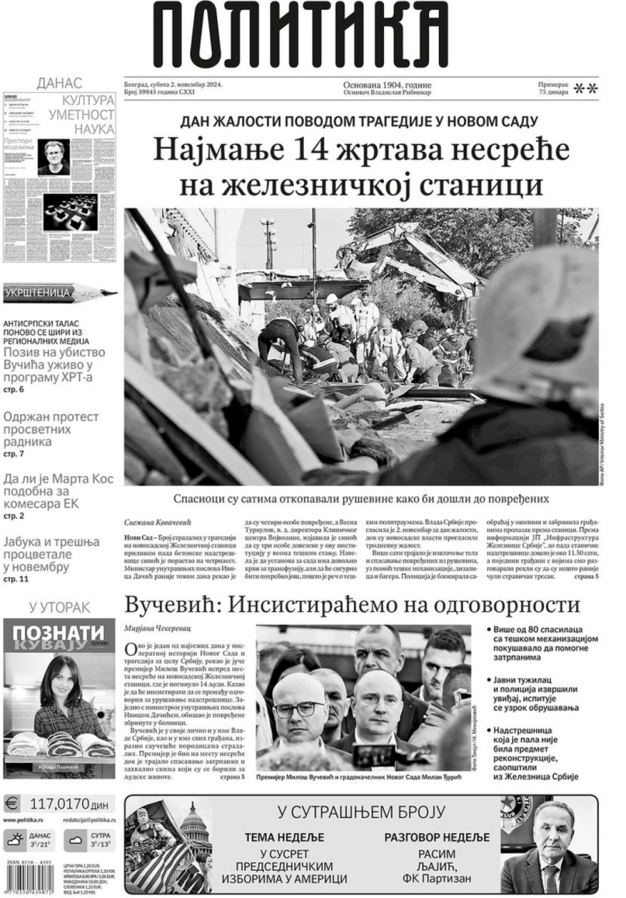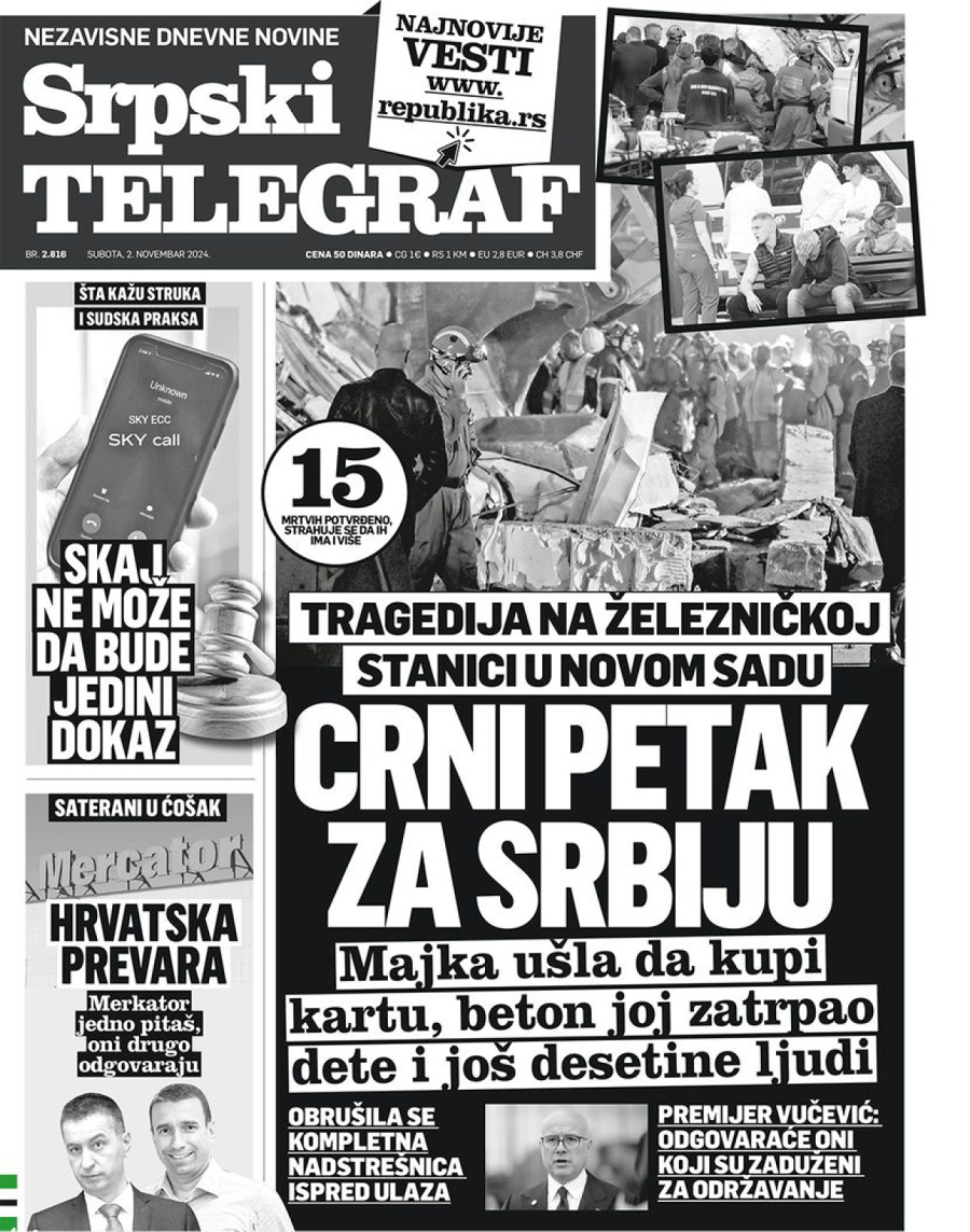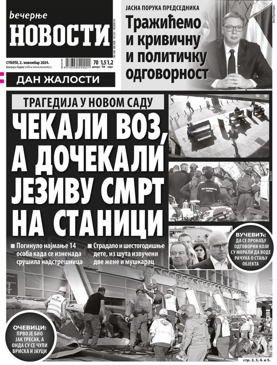 Novine: "Vučević: Insistiraćemo na odgovornosti"; "Čekali voz, a dočekali jezivu smrt na stanici"