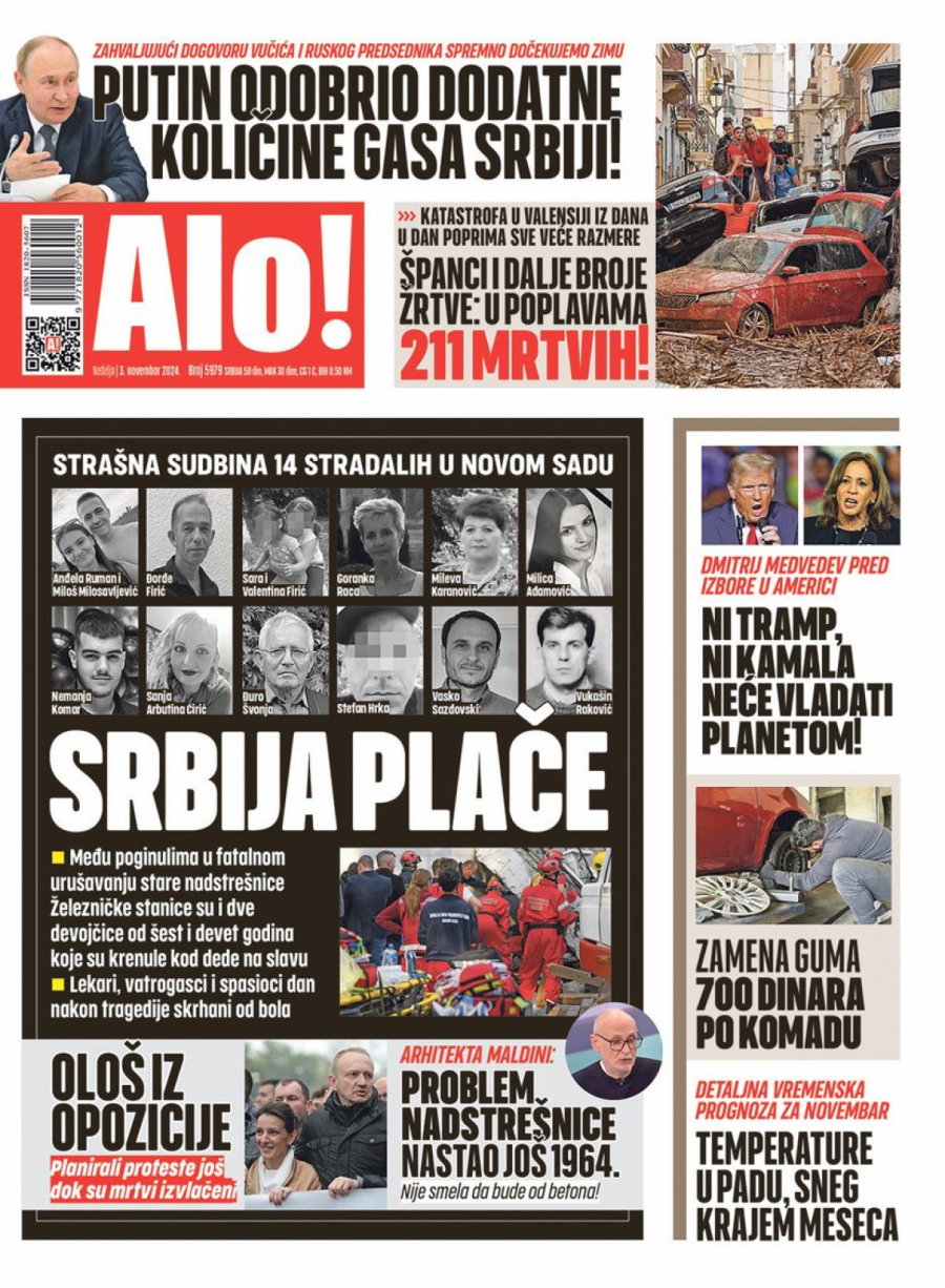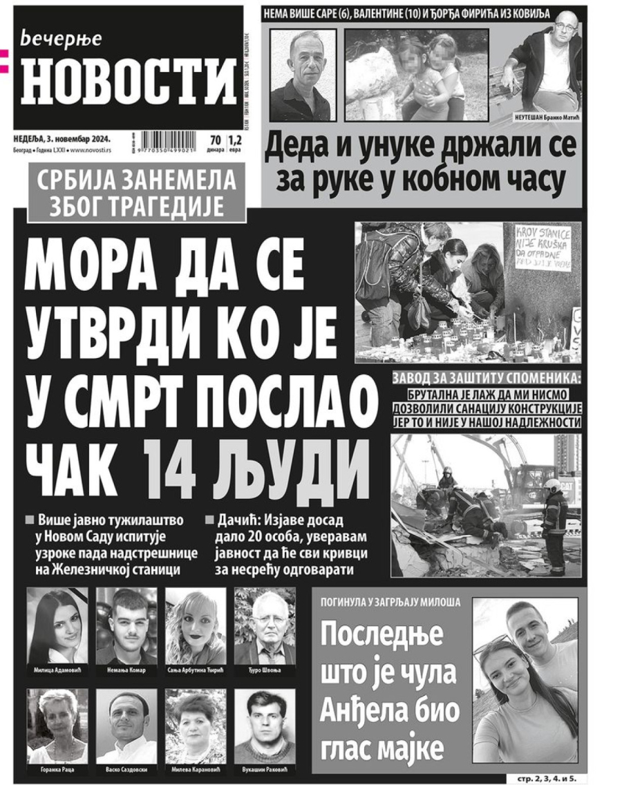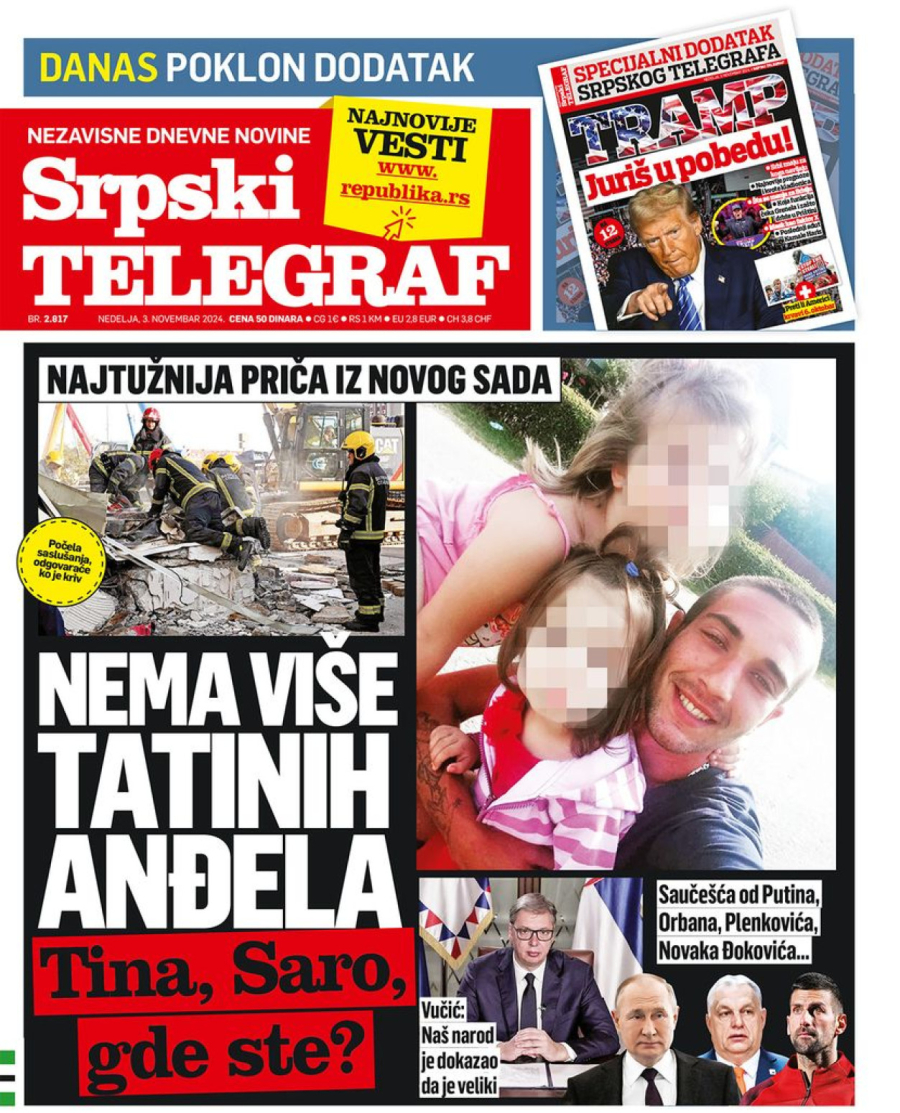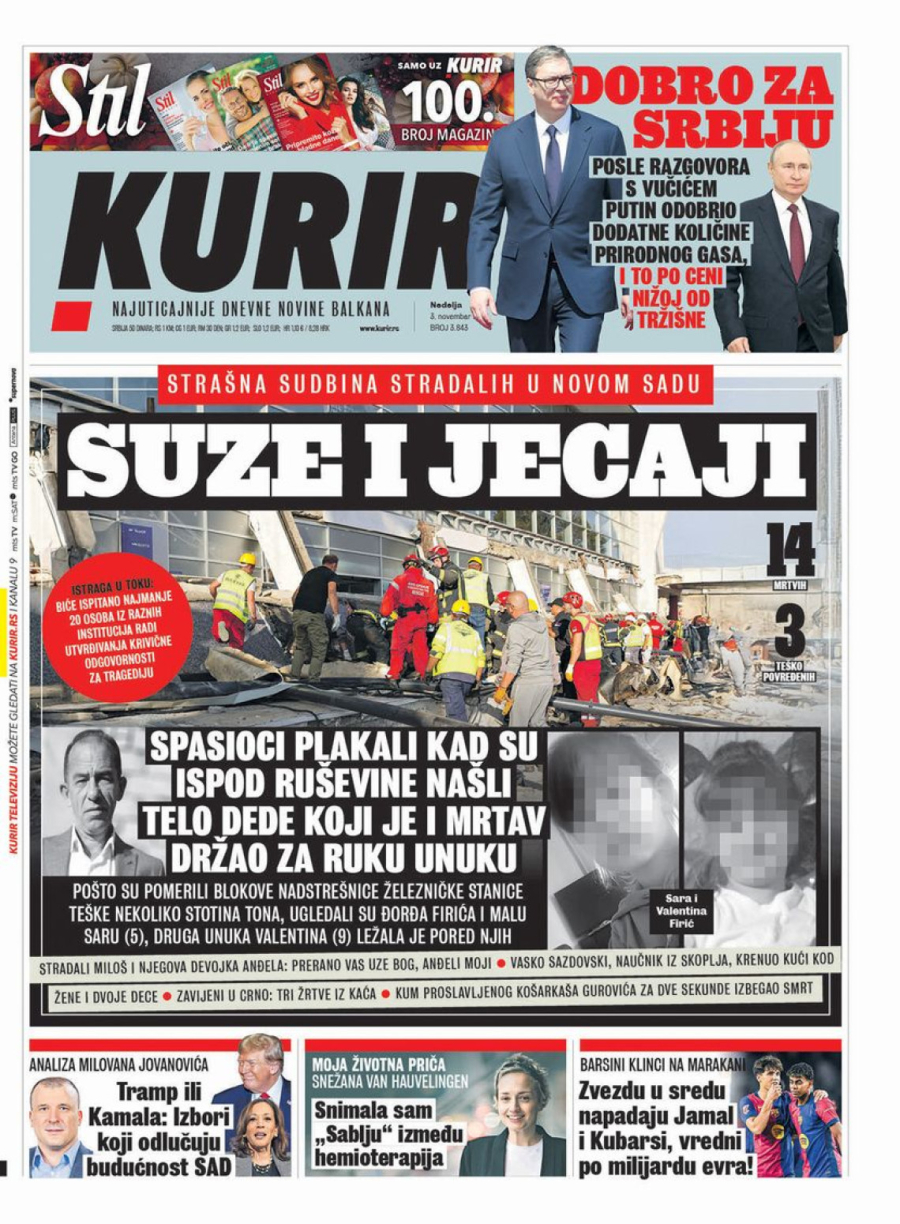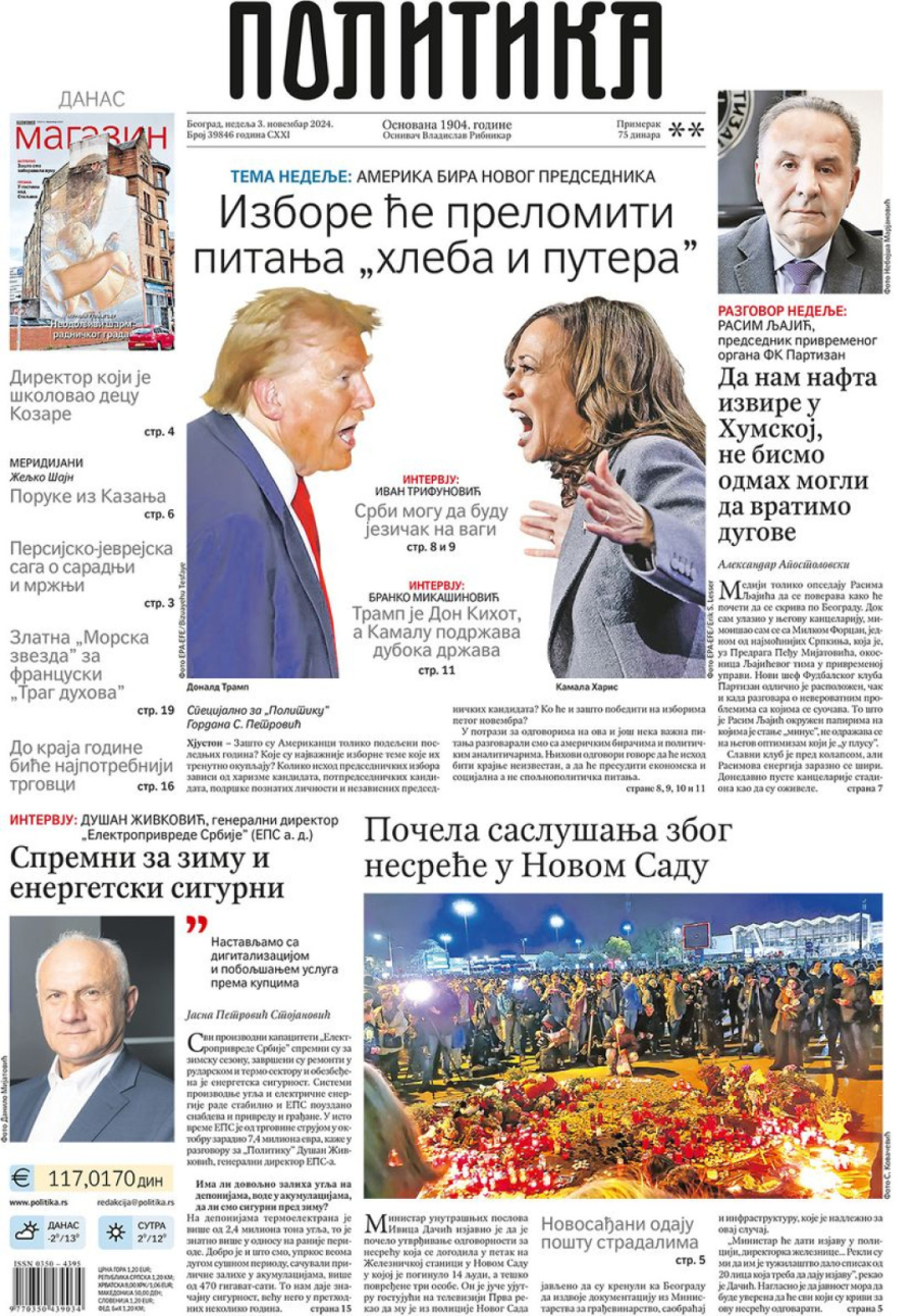 Dnevne novine u Srbiji za nedelju, 3. novembar 2024. godine, na naslovnim stranama najavljuju brojne aktuelne društveno-političke teme i donose ekskluzivne priče.