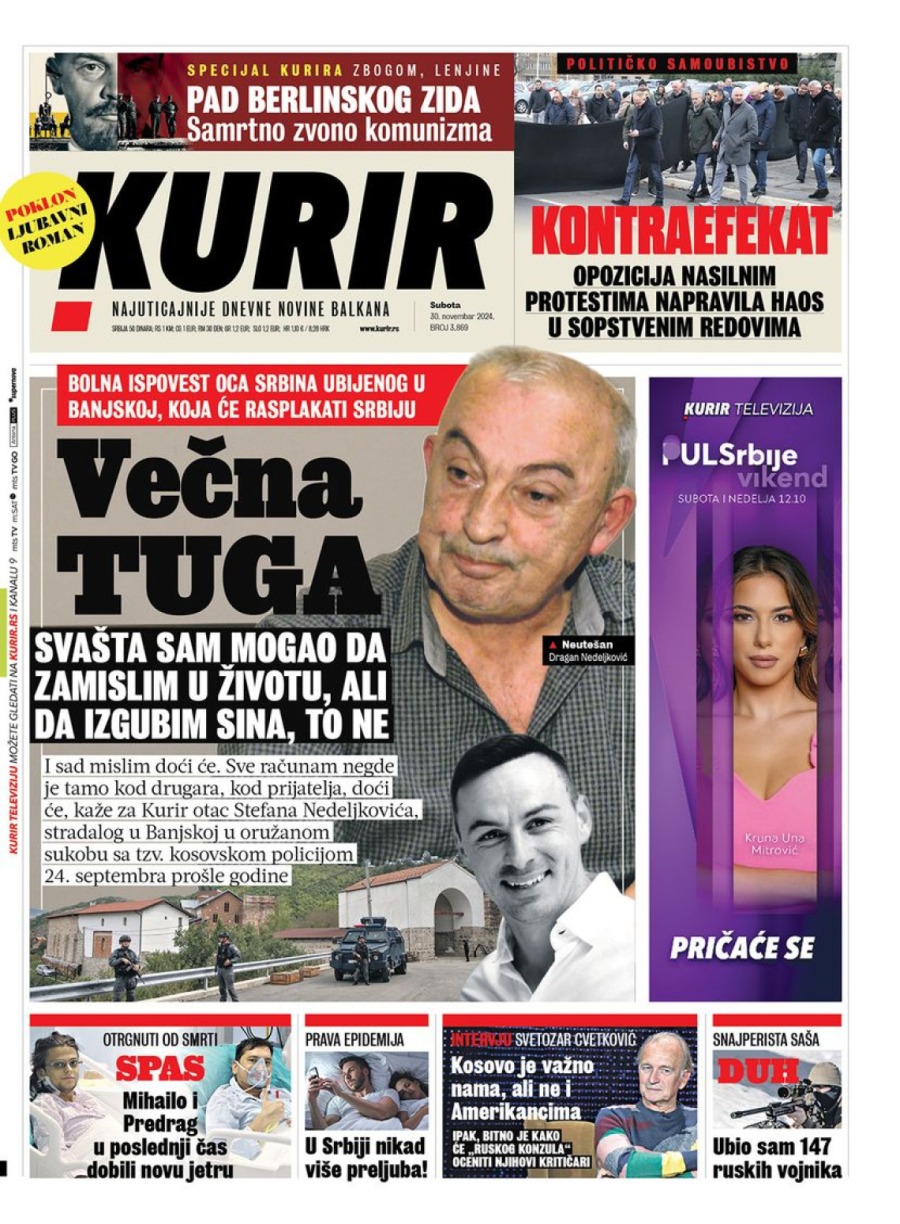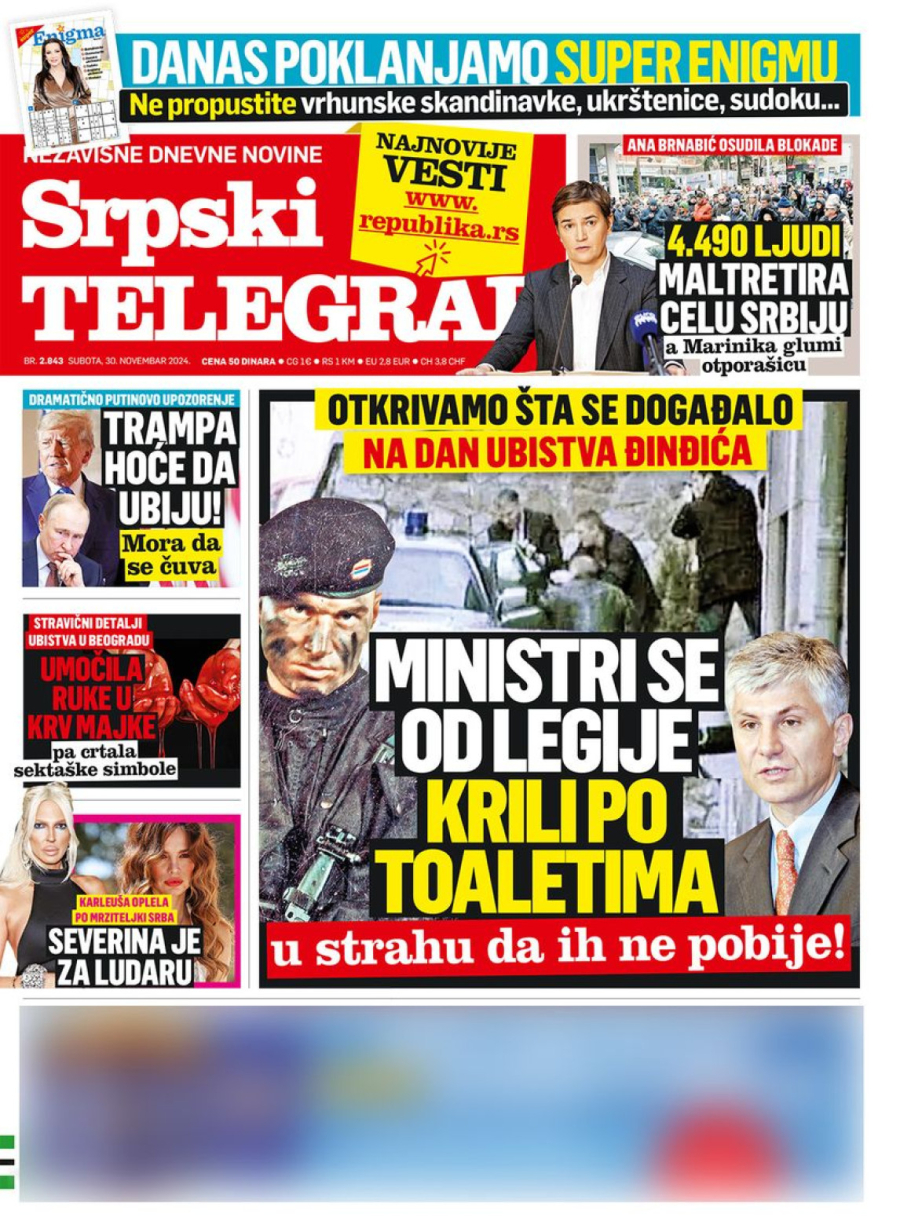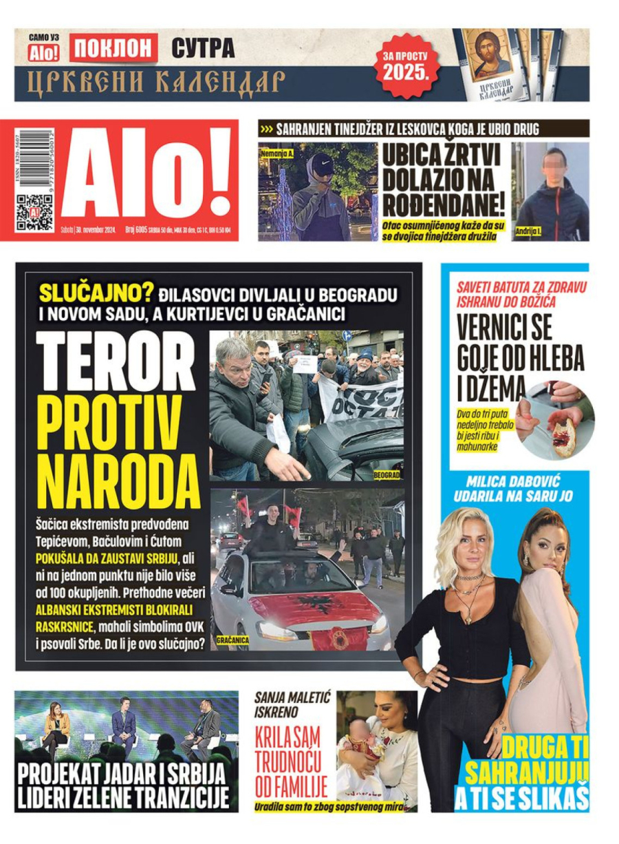 Dnevne novine u Srbiji za subotu, 30. novembar 2024. godine, na naslovnim stranama najavljuju brojne aktuelne društveno-političke teme i donose ekskluzivne priče.
