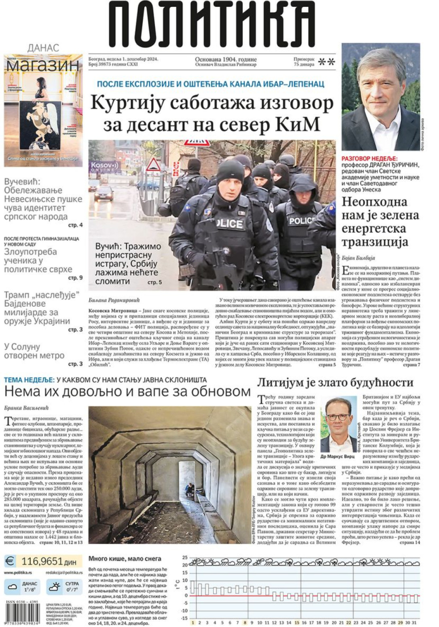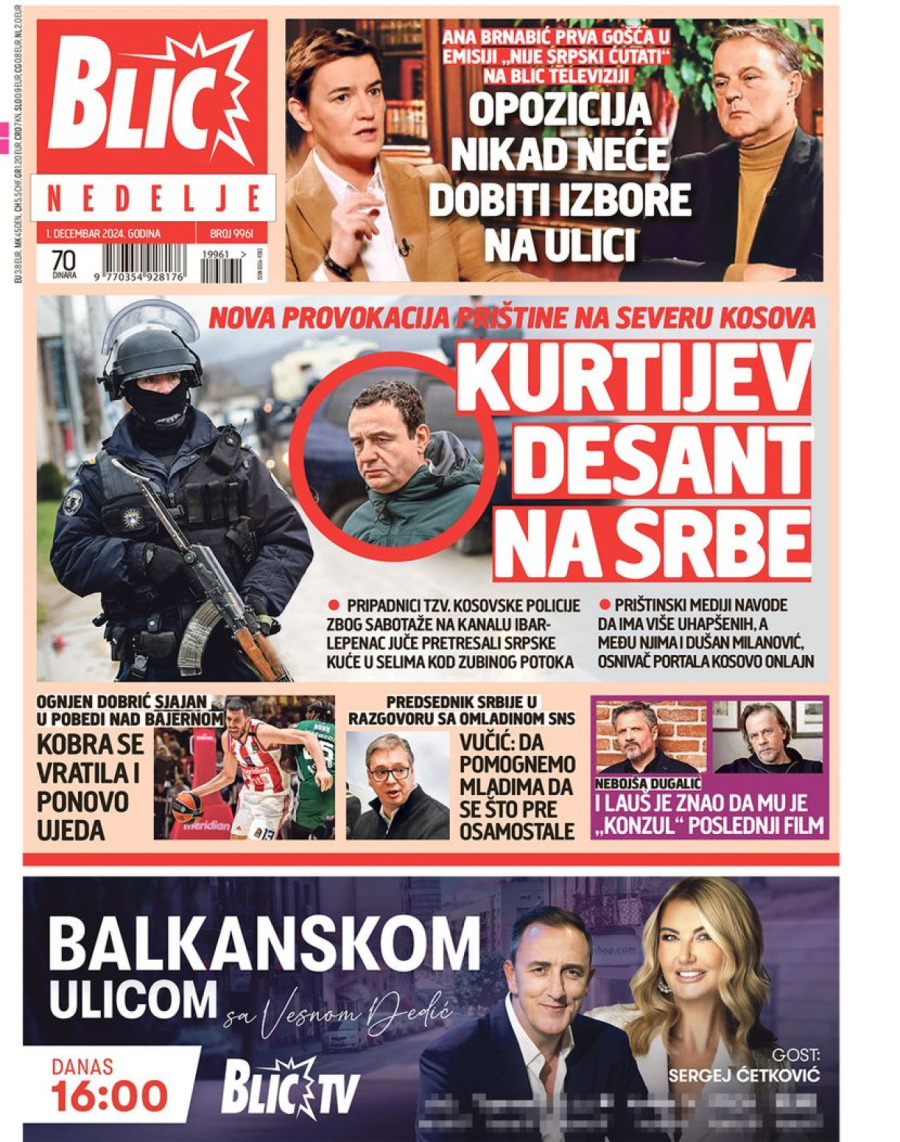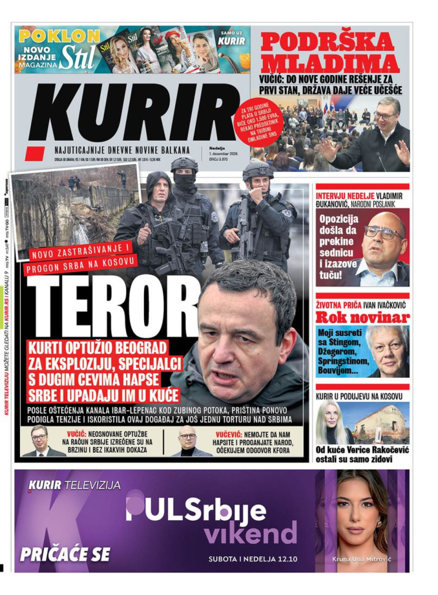 Novine: "Kurtiju sabotaža izgovor za desant na sever KiM"; "Udar na sever KiM"