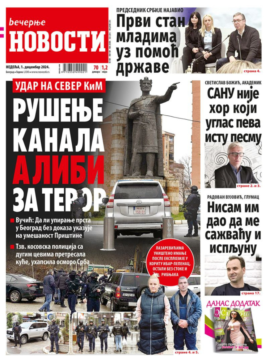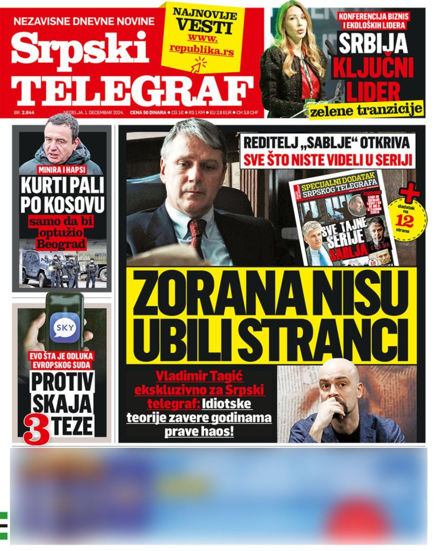 Dnevne novine u Srbiji za nedelju, 1. decembar 2024. godine, na naslovnim stranama najavljuju brojne aktuelne društveno-političke teme i donose ekskluzivne priče.