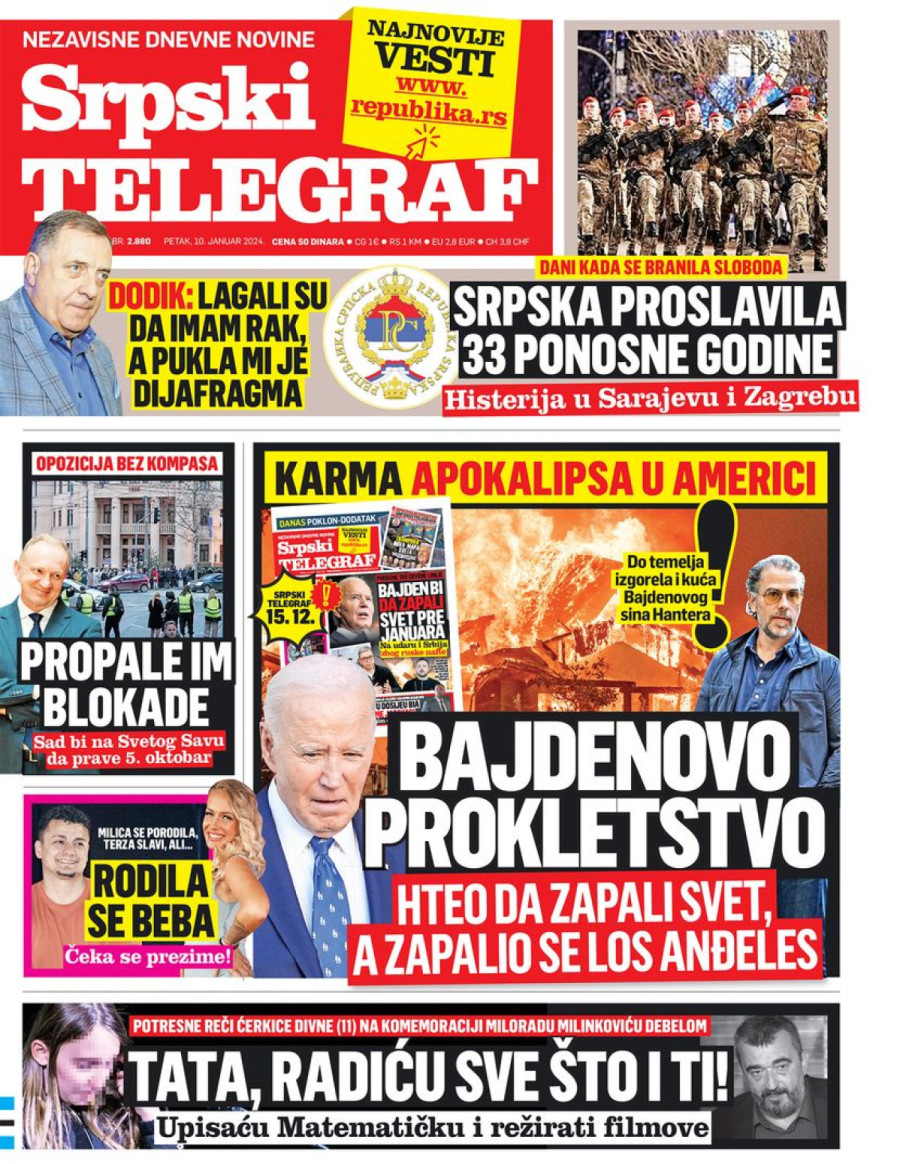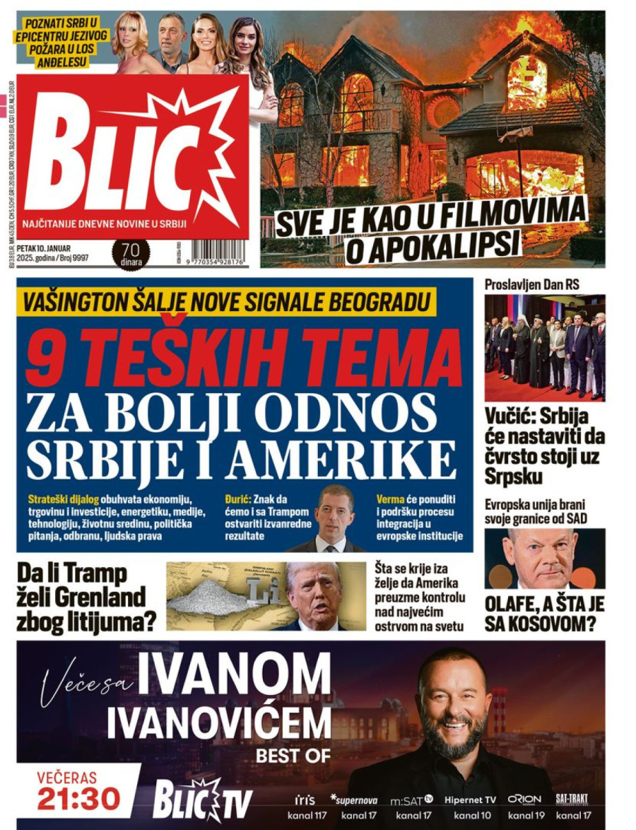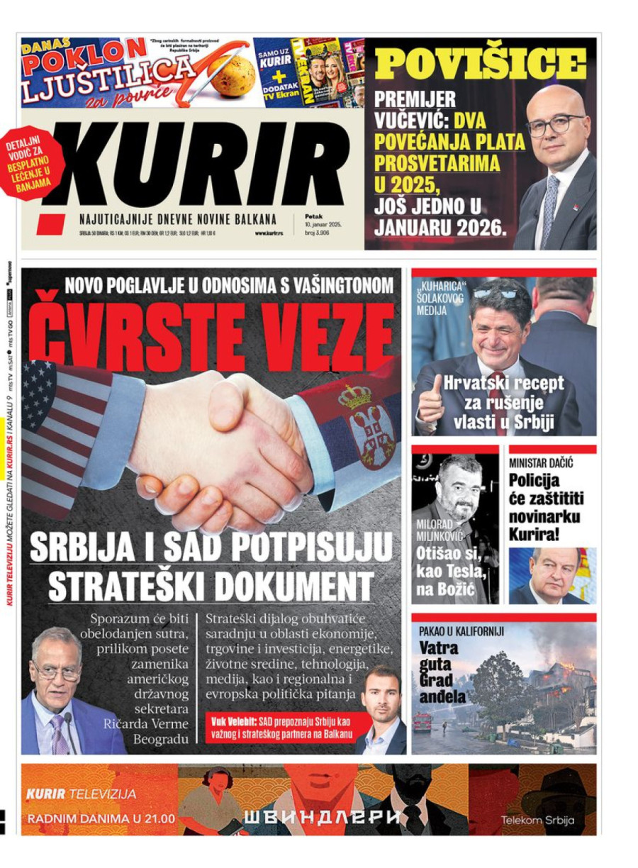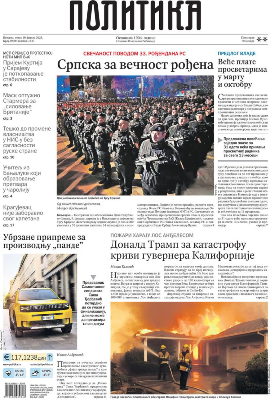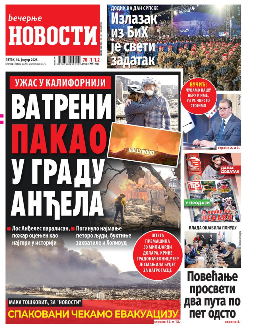 Dnevne novine u Srbiji za petak, 10. januar 2025. godine, na naslovnim stranama najavljuju brojne aktuelne društveno-političke teme i donose ekskluzivne priče.