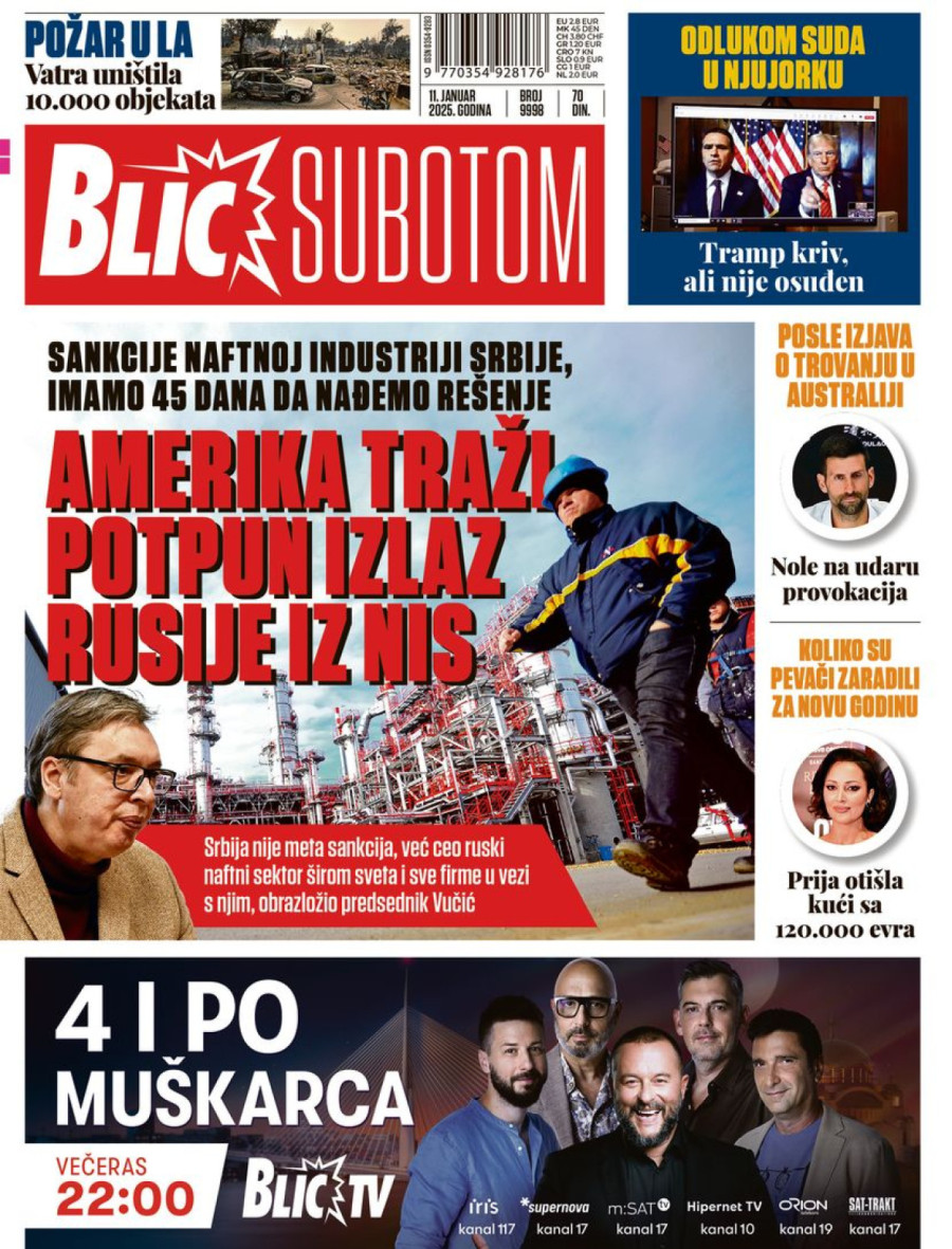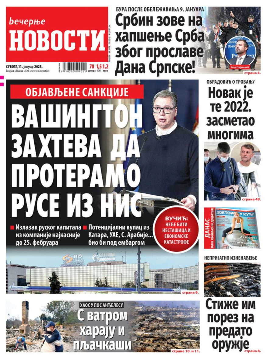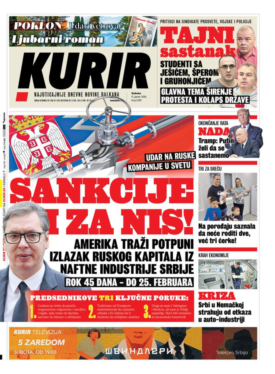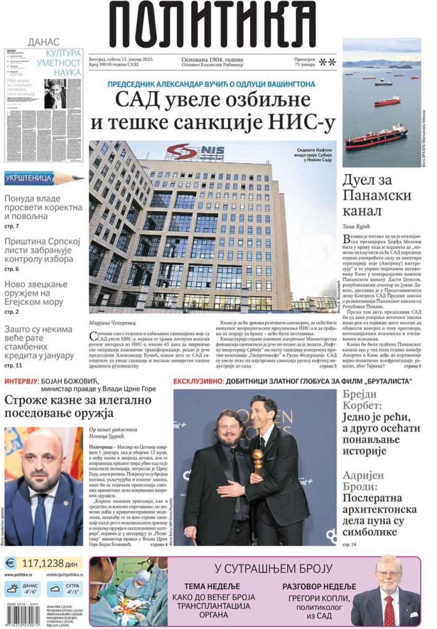 Dnevne novine u Srbiji za subotu, 11. jaunar 2025. godine, na naslovnim stranama najavljuju brojne aktuelne društveno-političke teme i donose ekskluzivne priče.