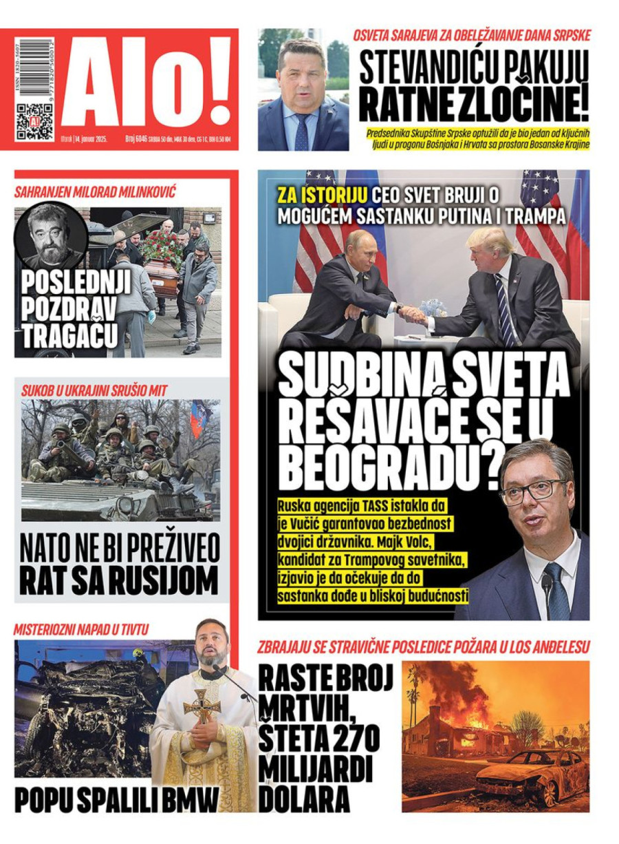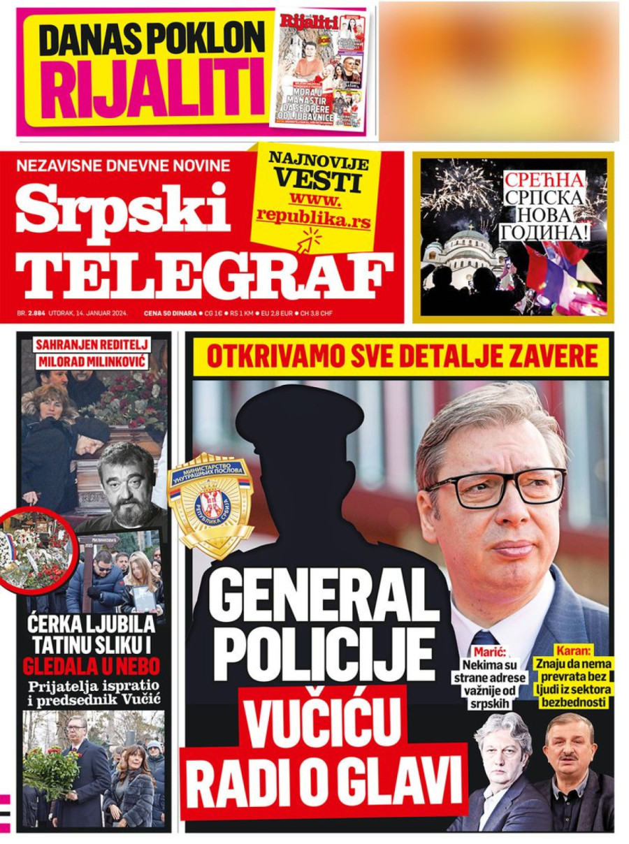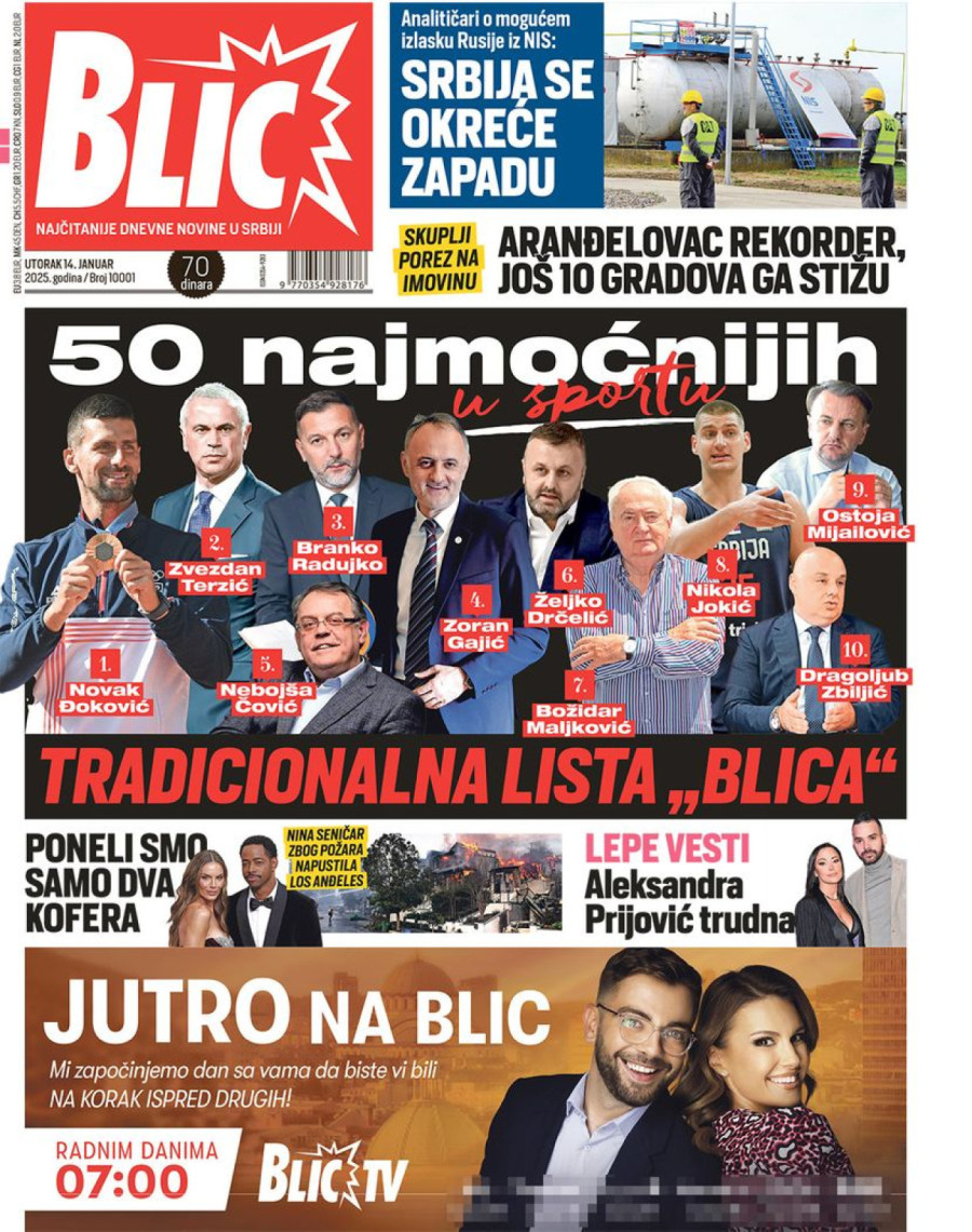 Dnevne novine u Srbiji za utorak, 14. jaunar 2025. godine, na naslovnim stranama najavljuju brojne aktuelne društveno-političke teme i donose ekskluzivne priče.