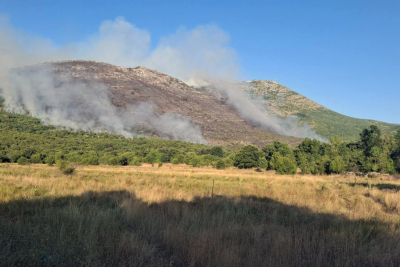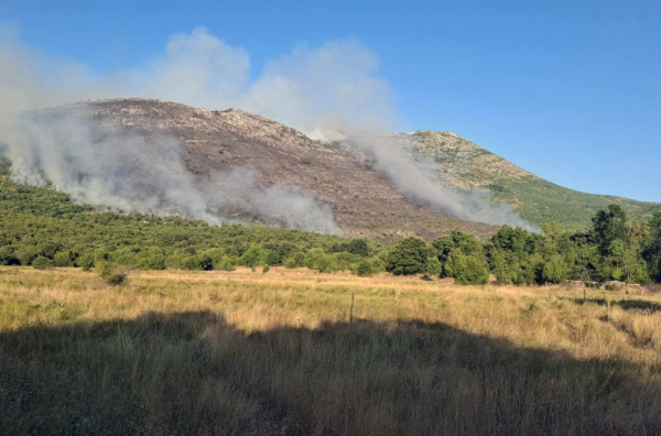 Požar u selu Trebijovi kod Trebinja i dalje je aktivan i jedan njegov krak se proširio ka brdu Leotar prema repetitoru, a drugi ka selu Aljetići, saopštili su trebinjski vatrogasci.