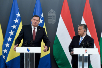 Mađarski premijer Viktor Orban i ministar spoljnih poslova Peter Sijarto sastali su se danas sa predsednikom Republike Srpske Miloradom Dodikom u Budimpešti, a Orban je posle sastanka saopštio da je Dodik osuđen jer "odbija da igra kako Brisel svira".