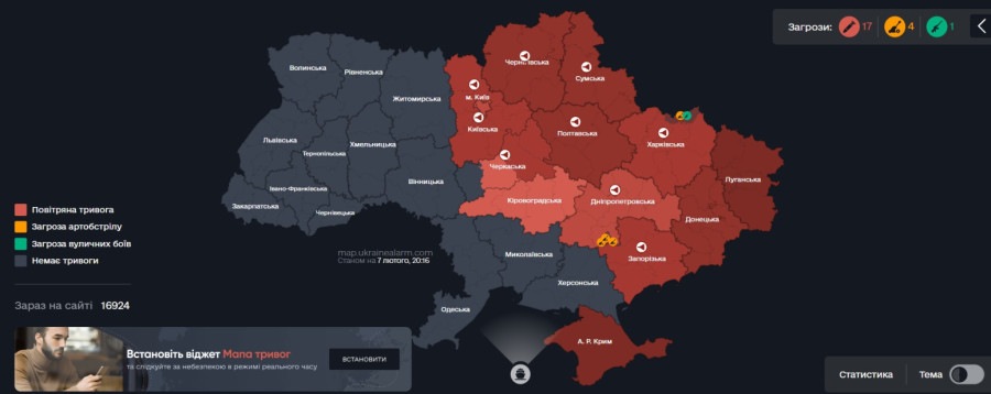 U Kijevu je proglašen vazdušni alarm, pokazuju podaci sa onlajn mape ukrajinskog Ministarstva za digitalnu transformaciju.