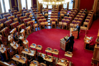 Predstavnik za štampu parlamenta potvrdio je za NRK da su zbog pretnje bombom svi ulazi zatvoreni i da niko ne sme da uđe i da izađe.
