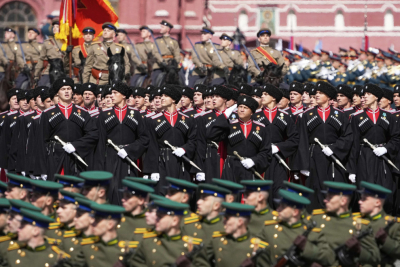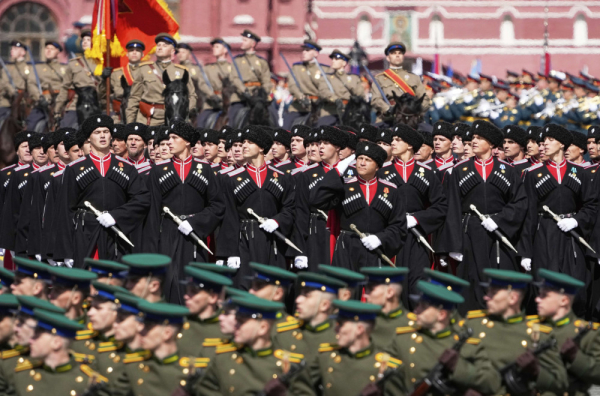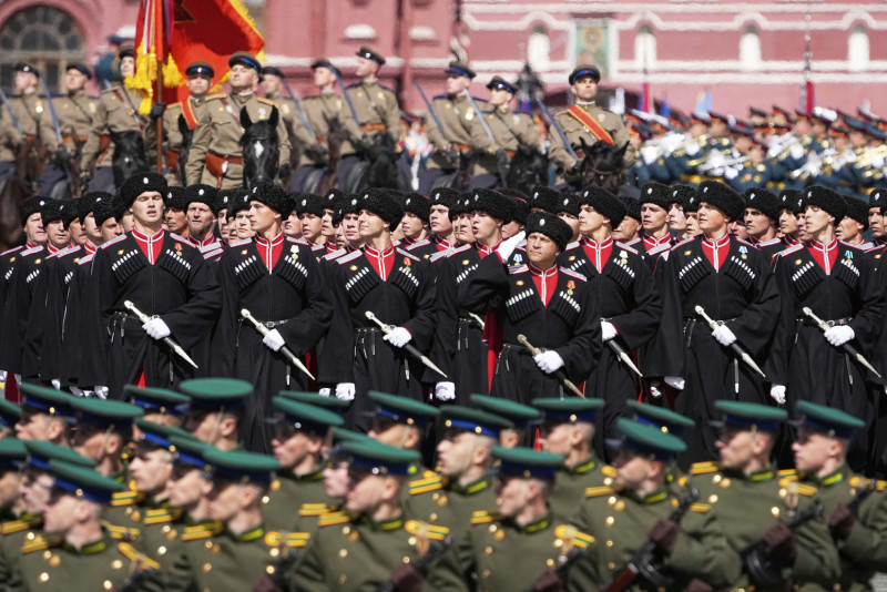 Devetog maja, paradne jedinice, uključujući učesnike specijalne operacije, marširale su kaldrmom Crvenog trga. Nakon ovoga, prošla je vojna oprema, posebno tenkovi T-72B3M, T-80BVM, T-90M i druga oklopna vozila, sistemi S-400, višecevni raketni sistemi Tornado-S, mobilni raketni sistemi Jars, kamioni KamAZ sa dronovima Geran i Lanset.