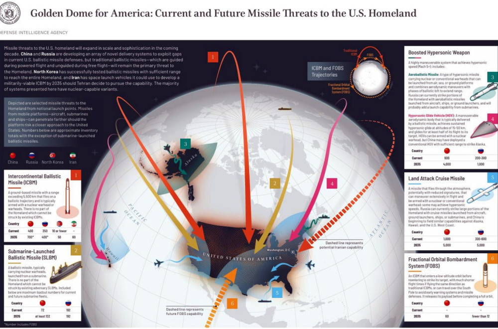 "Zlatna kupola za Ameriku: trenutne i buduće raketne pretnje američkoj domovini", piše DIA.