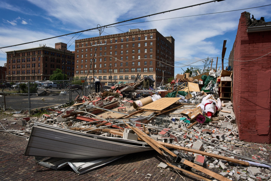 Duž jedne ulice, tornado je skinuo fasadu i crep i razbijao prozore.