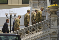 Prvi su do palate Čiragan došli pripadnici ukrajinske delegacije, koji su na sastanak stigli u 11:47, a neki članovi su, moguće po uzoru na predsednika Zelenskog, došli obučeni u uniforme.