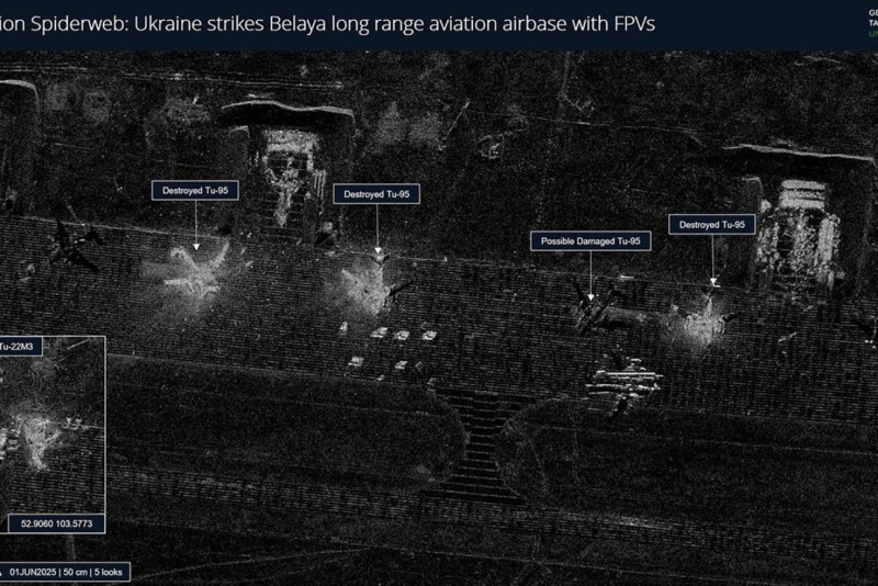 U utorak ujutru, Dejli telegraf je objavio satelitske snimke iz otvorenog koda koji prikazuju ukupno 13 uništenih aviona na aerodromima Olenja u Murmanku i Belaja u Irkutsku – osam Tu-95, četiri Tu-22 i jedan An-23.