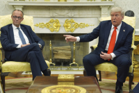 Tramp je ostao uglavnom uzdržan u Ovalnom kabinetu, iako je rekao da će Evropa i SAD "nadamo se na kraju postići trgovinski sporazum". Sugerisao je da bi energetika mogla biti deo toga, preuzimajući zasluge za "zaustavljanje" sada ugašenog gasovoda Severni tok 2.