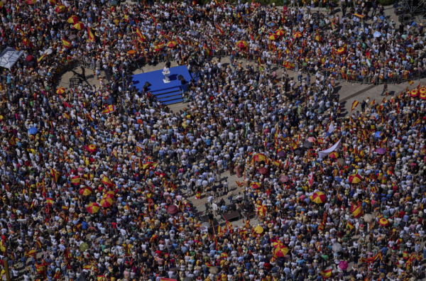 Više desetina hiljada ljudi okupilo se danas u Madridu na demonstracijama koje je organizovala glavna konzervativna opoziciona stranka, protiv vlade socijalističkog premijera Pedra Sančesa, optužujući je za korupciju.