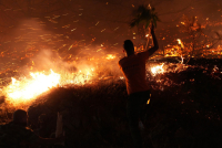 Podseća se da je Kalifornija uništena ogromnim požarima iz januara ove godine, u kojima je poginulo najmanje dvadeset ljudi, dok je na hiljade ostalo bez krova nad glavom, dok su gusti stubovi toksičnog dima prekrivali grad.