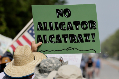 Portparolka Bele Kuće Karolina Livit je napomenula da je centar "neformalno poznat kao Aligator Alkatraz", što je nadimak koji je uznemirio imigrantske aktiviste.