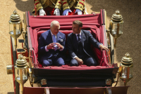 Ceremonijalni doček uključio je paljbu iz topova, povorku kočija i vojnu paradu, a potom će uslediti i svečani ručak sa članovima kraljevske porodice.