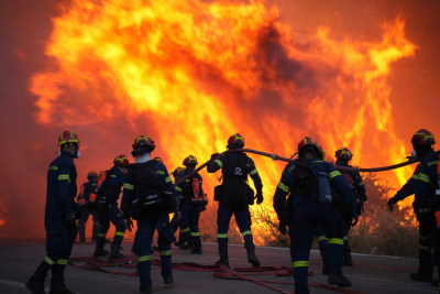 Verifikovani video-zapisi prikazuju vatrogasce kako tokom noći gase vatru i spasioce koji pomažu ljudima da se evakuišu sa krova.