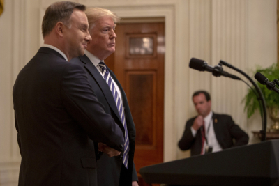 Duda je rekao, nakon razgovora sa Trampom, koji je trajao oko dva i po sata, da je to bio prijateljski sastanak. Dudin pomoćnik Vojćeh Kolarski, koji je takođe prisustvovao sastanku, rekao je da su se Tramp i Duda prisećali vremena kada su četiri godine sarađivali dok su bili na predsedničkim funkcijama, vremena koje je bilo "veoma plodno za američko-poljske odnose".