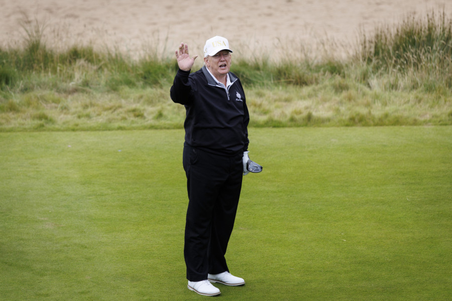 Predsednik SAD Donald Tramp je zvanično otvorio svoj novi teren za golf u Škotskoj rekavši da će odigrati kratku rundu pre nego što se vrati u Vašington da "gasi požare širom sveta".